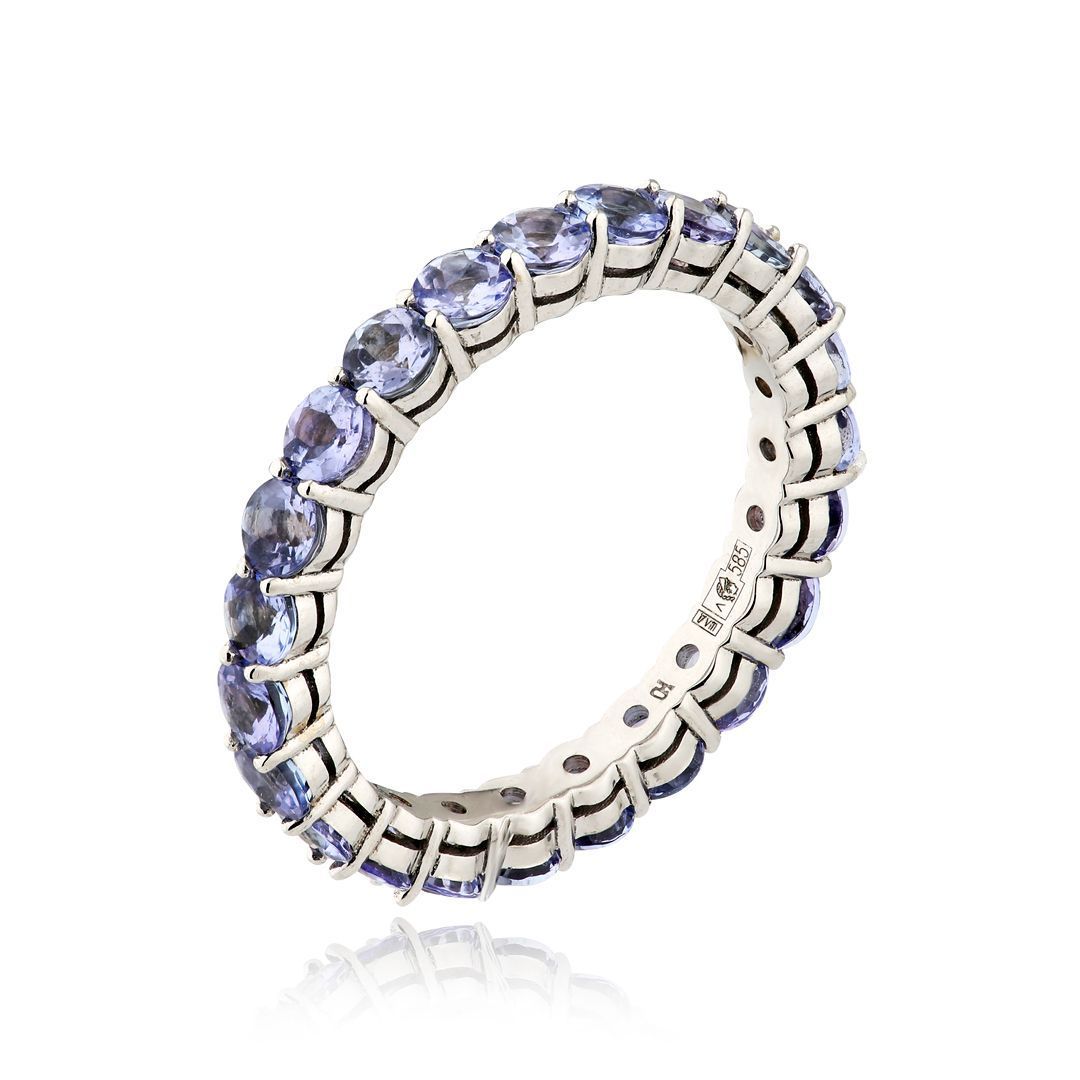 Кольцо из белого золота с танзанитами