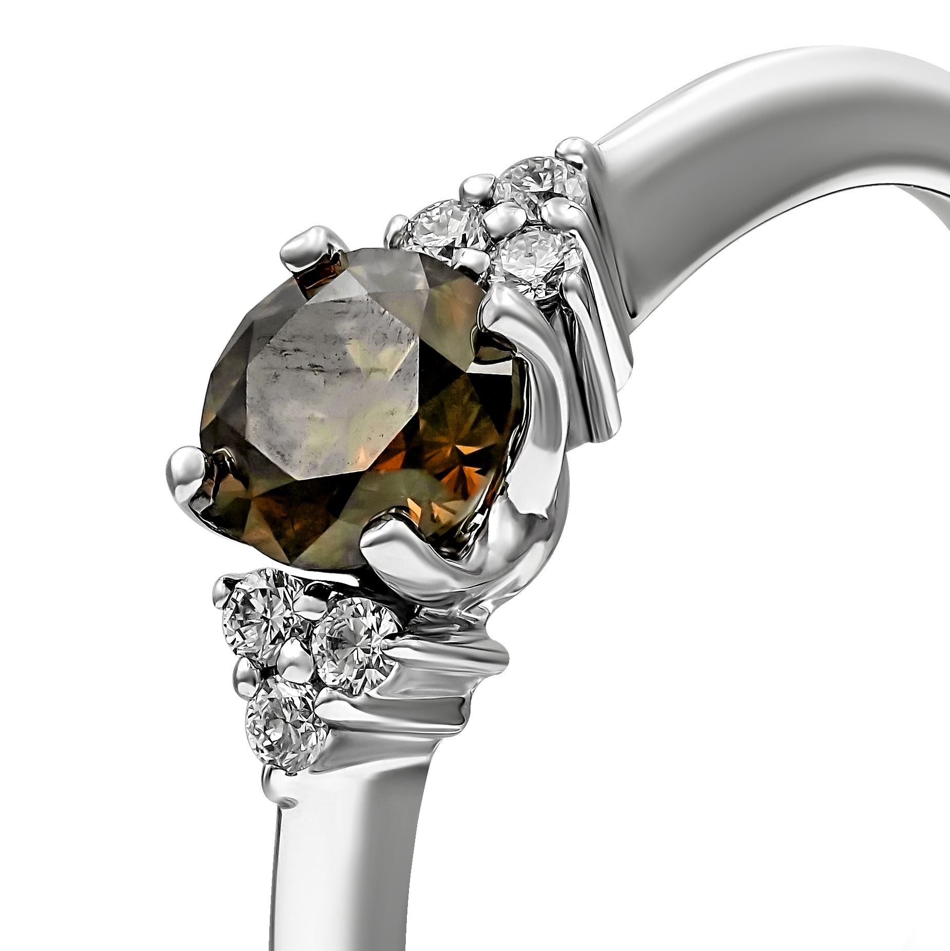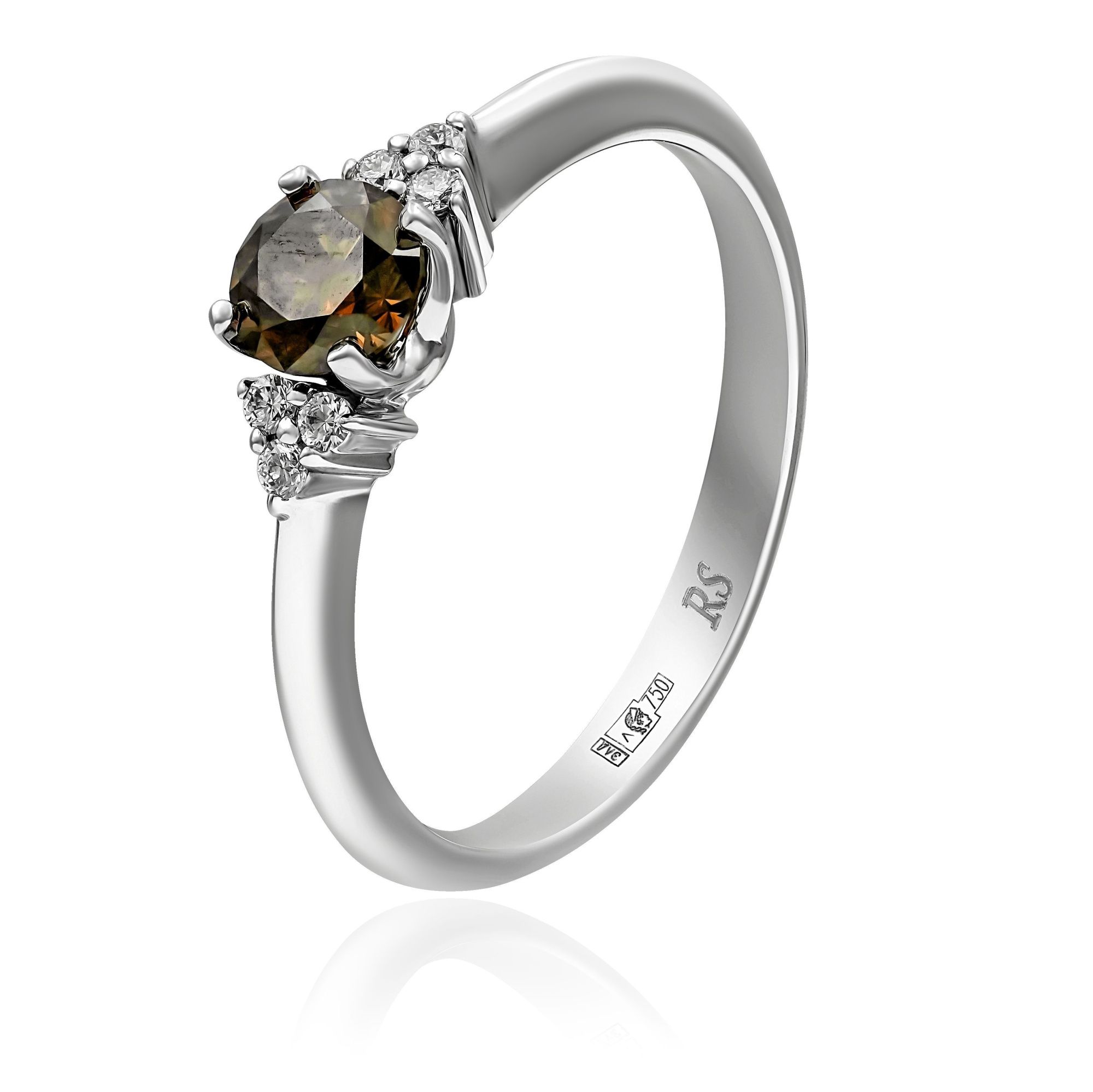 Кольцо из белого золота с коньячным бриллиантом