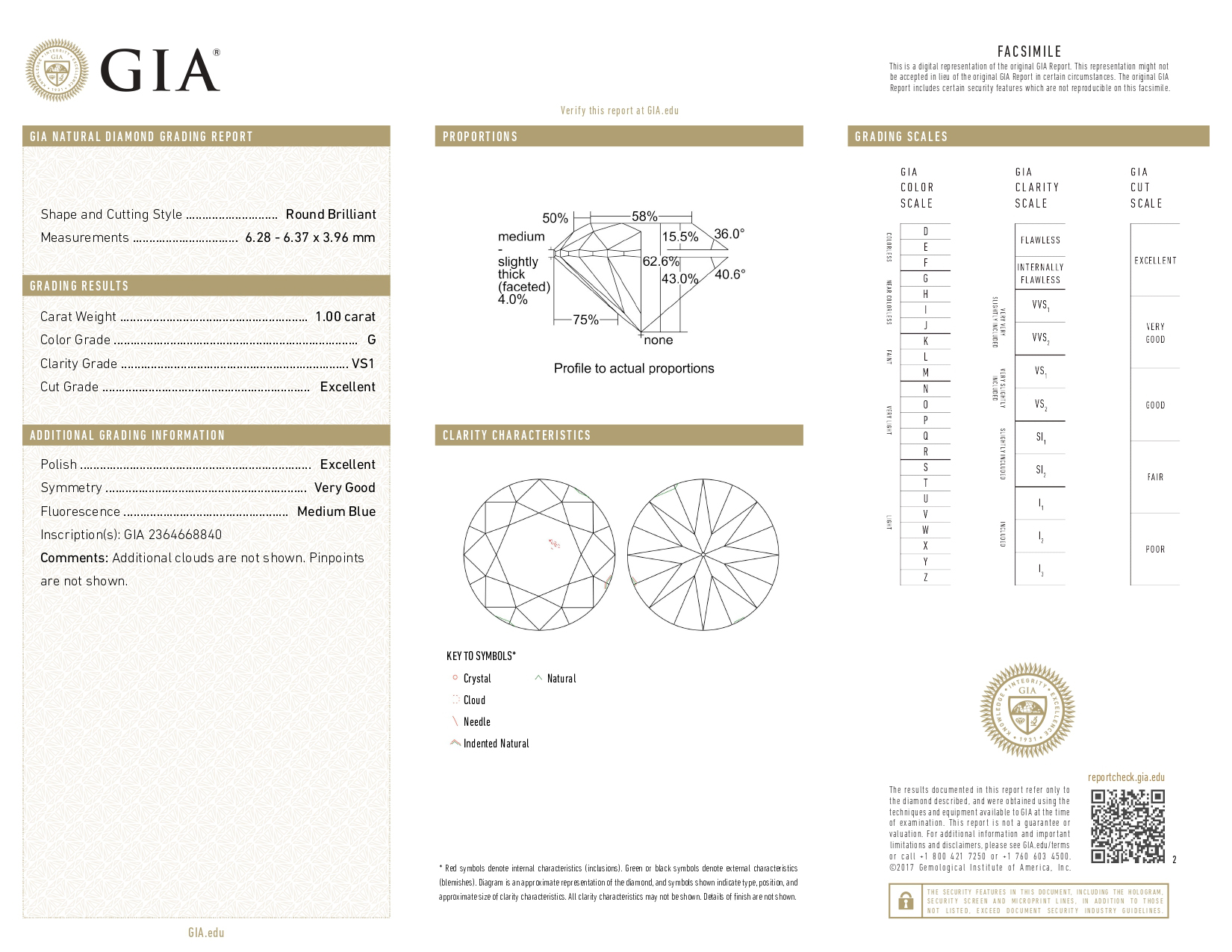 Цвет: 4 , Чистота: 5 Вес: 1.000 ct.
