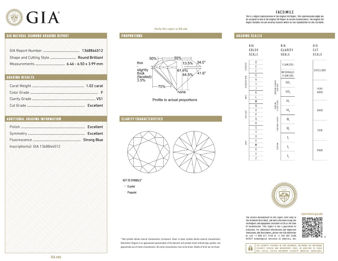 Кольцо из белого золота с бриллиантом 1.02 ct