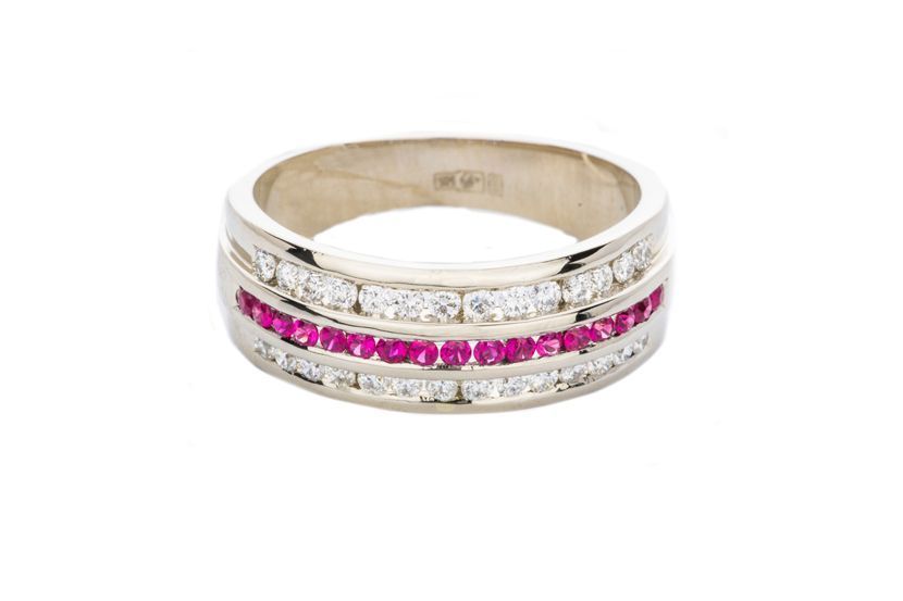 Кольцо из белого золота с рубинами и бриллиантами