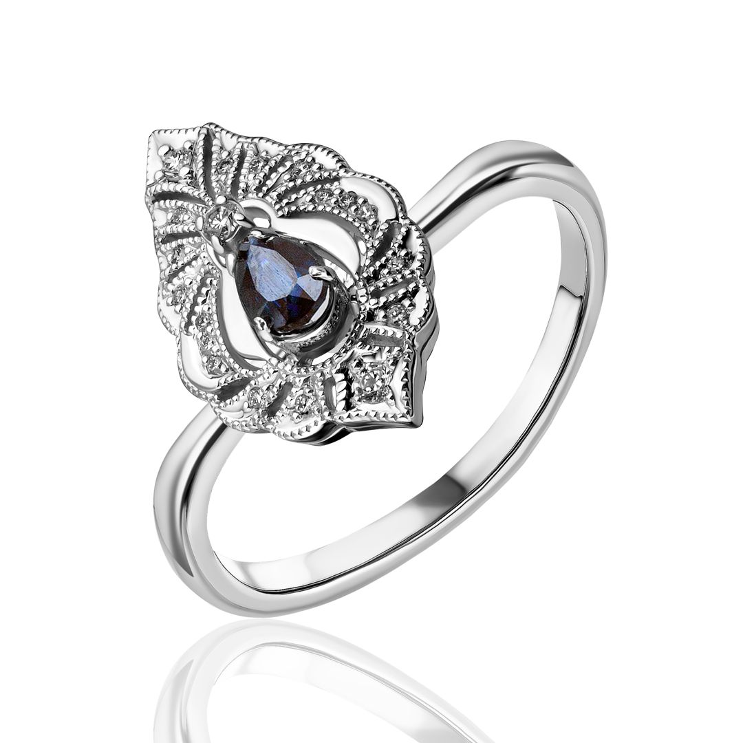 Кольцо из белого золота с сапфиром и бриллиантами