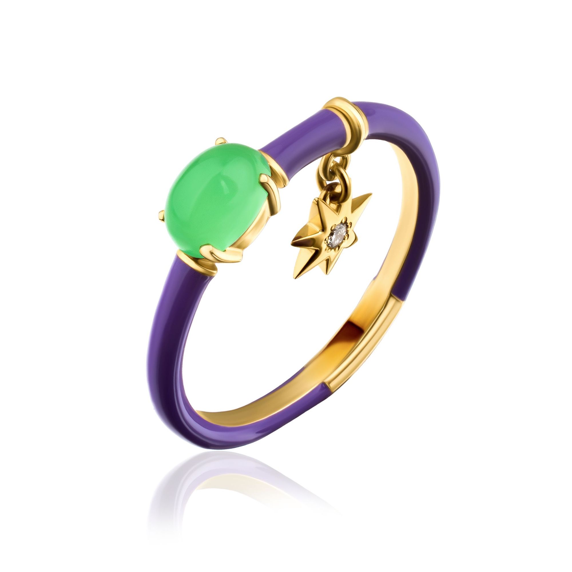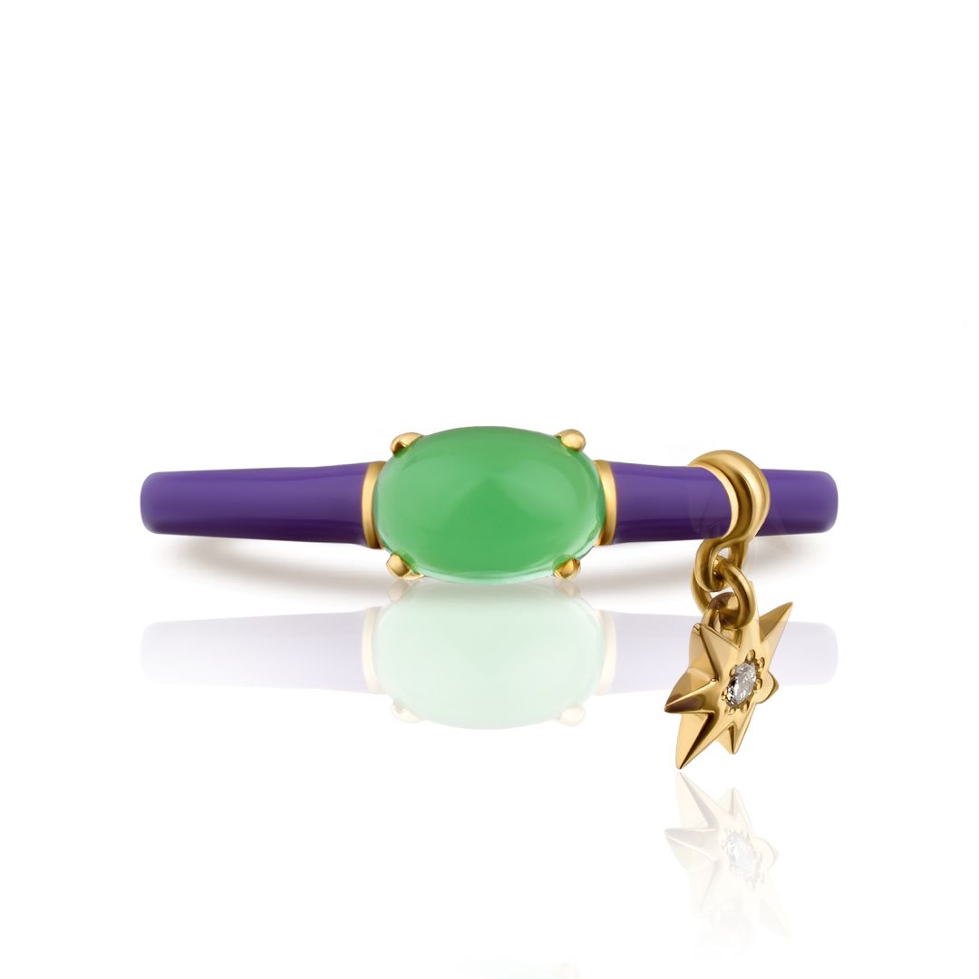Кольцо из желтого золота с хризопразом и бриллиантом