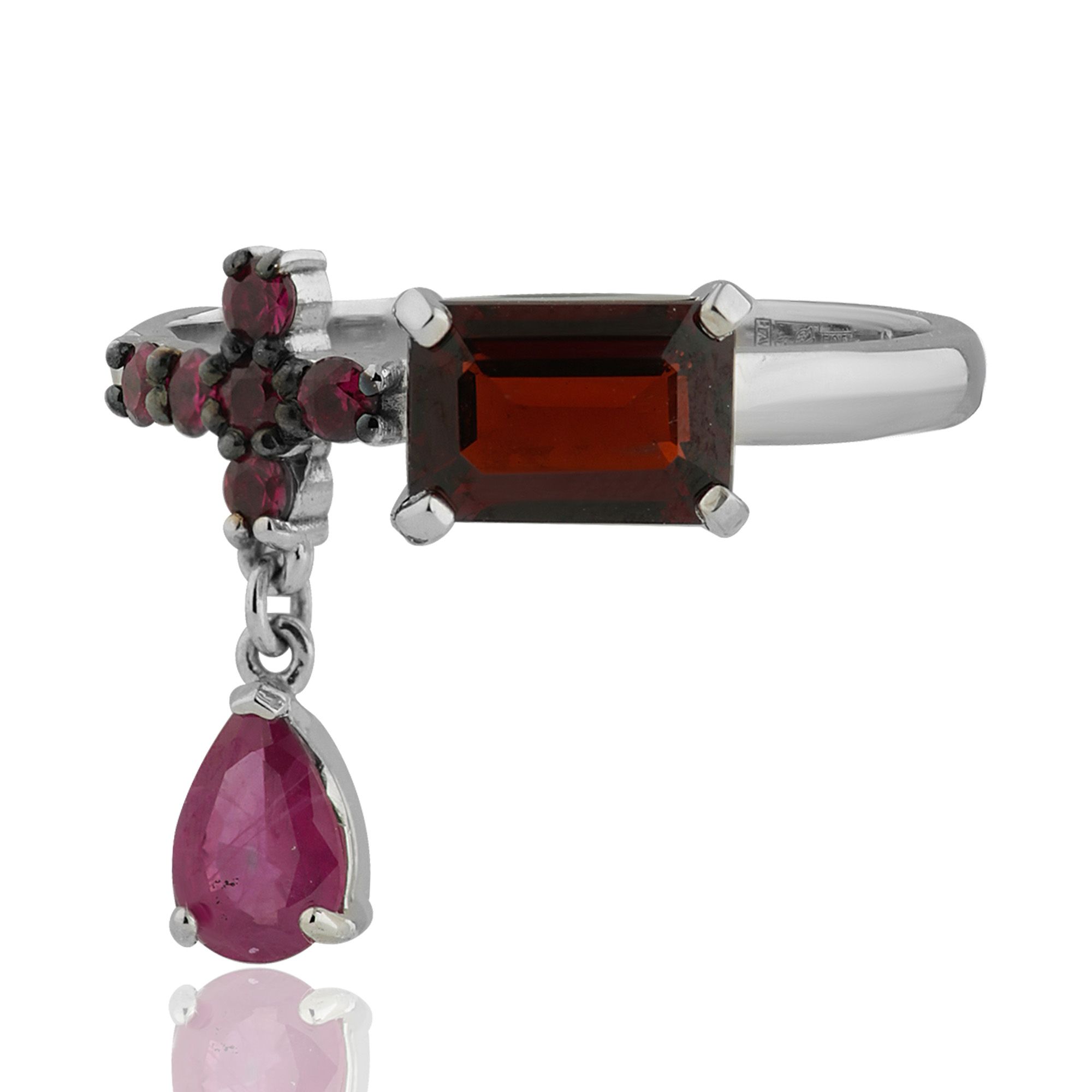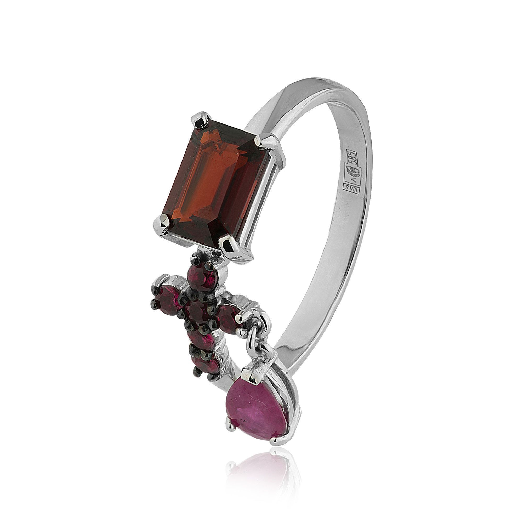 Кольцо из белого золота с гранатом и рубинами
