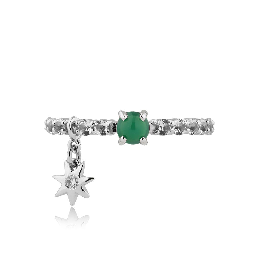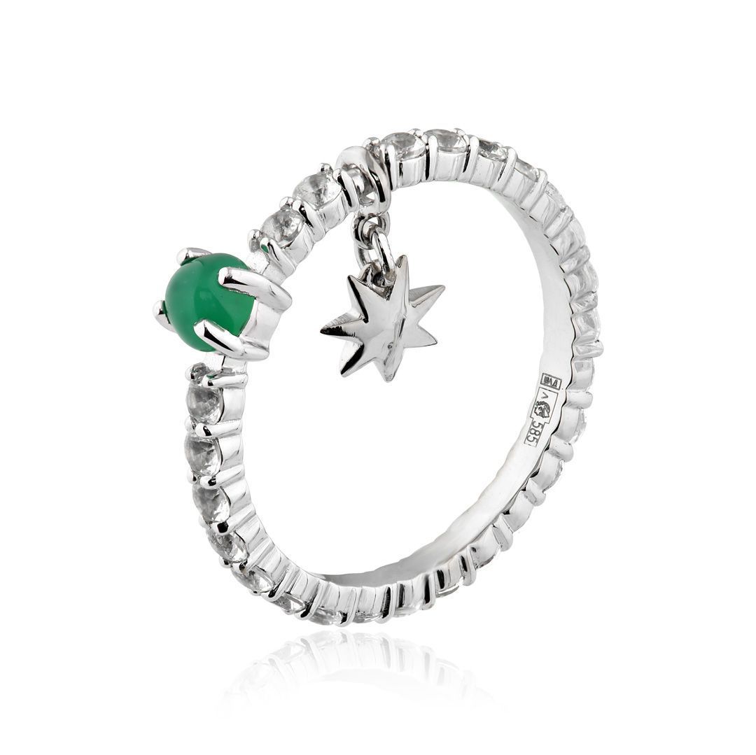 Кольцо из белого золота с топазами, бриллиантом и хризопразом