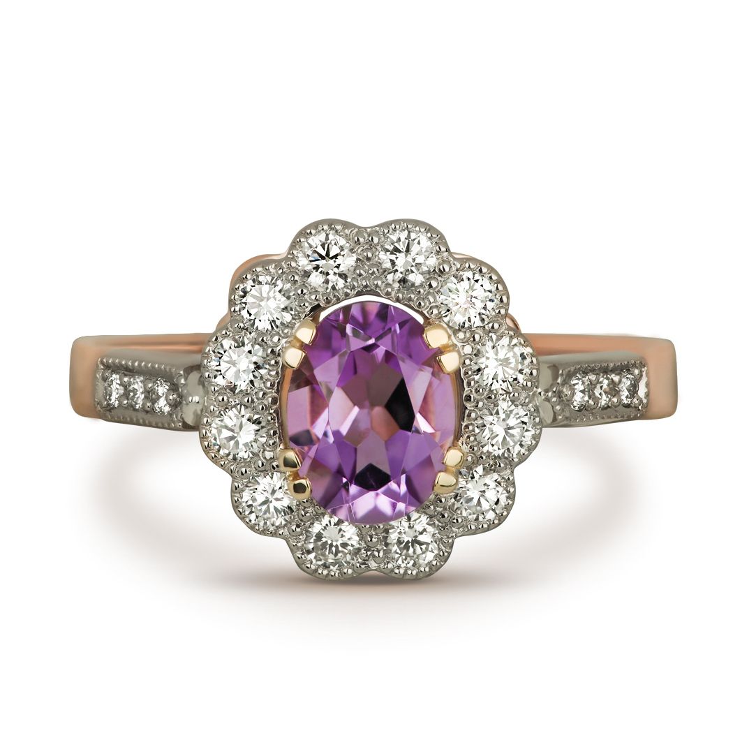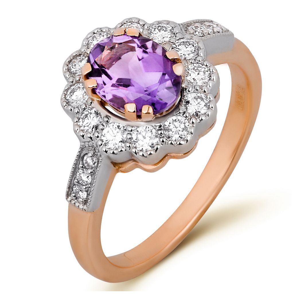 Кольцо из красного золота с бриллиантами и аметистом