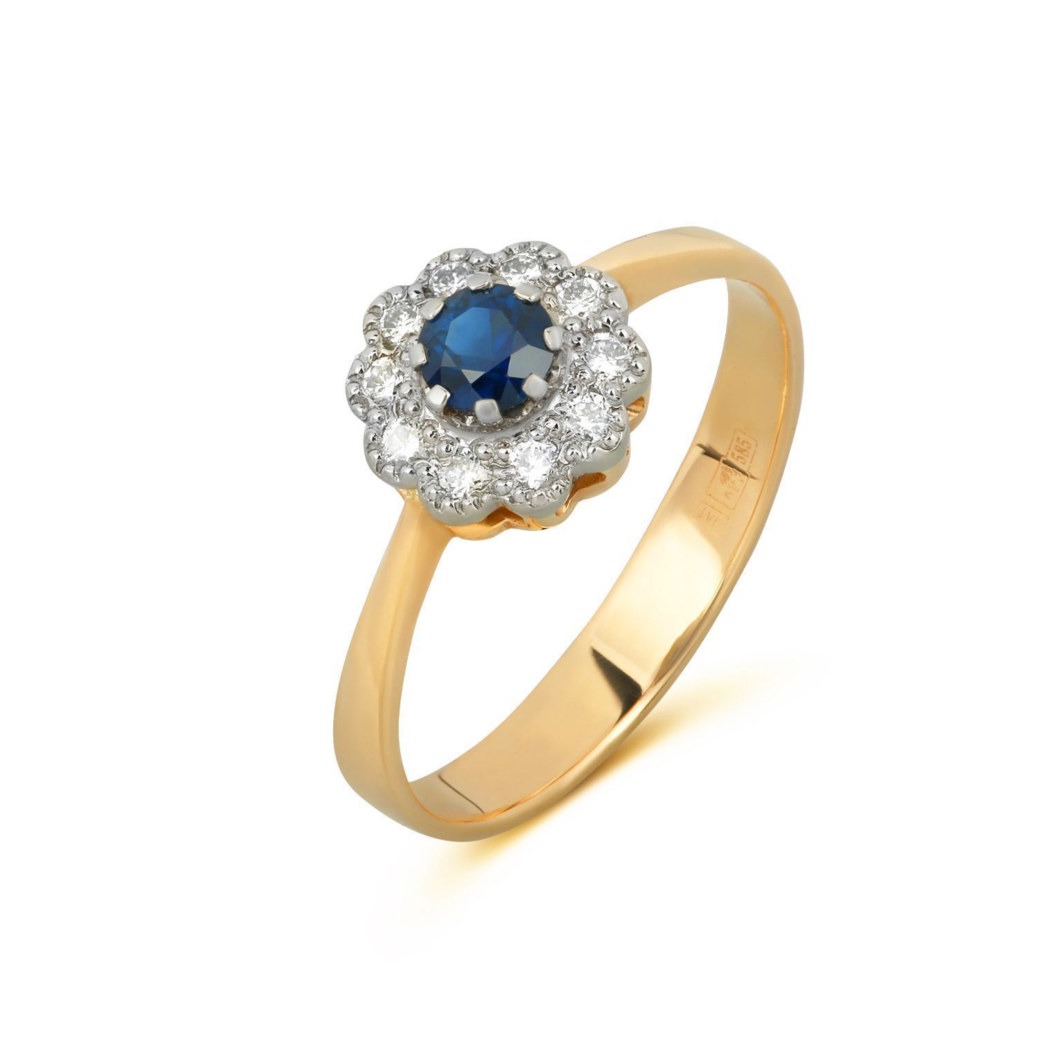 Кольцо из красного золота с сапфиром и бриллиантами