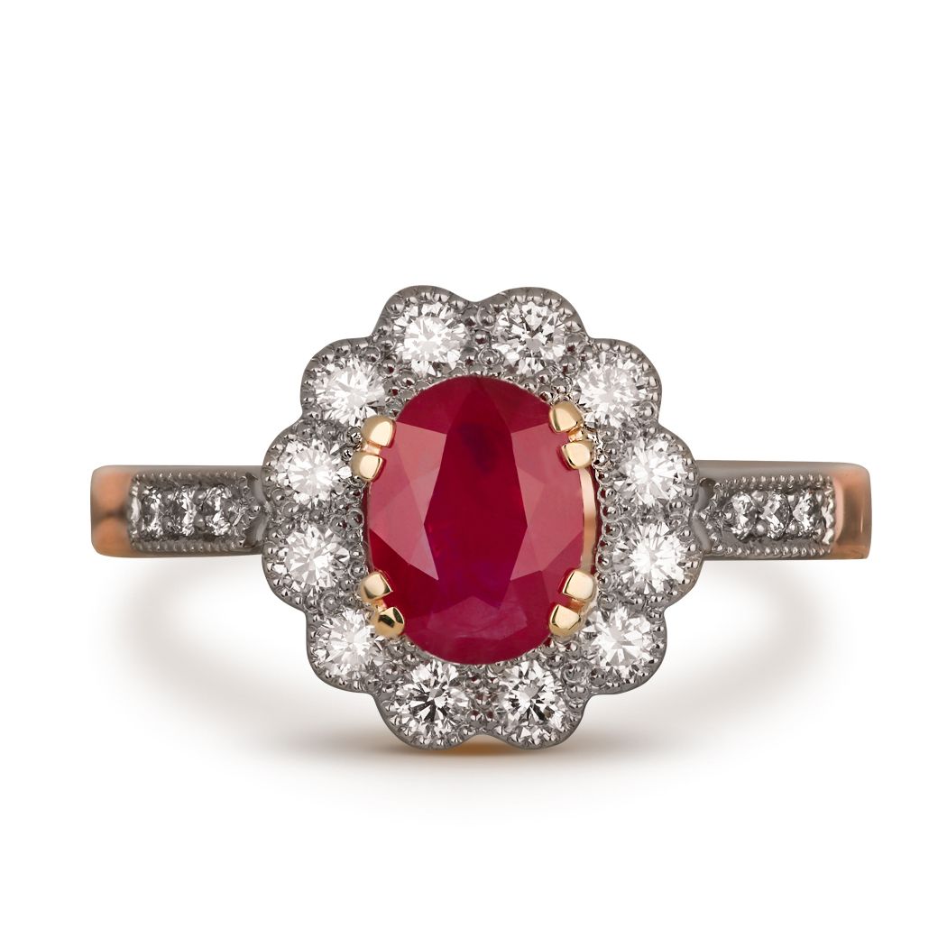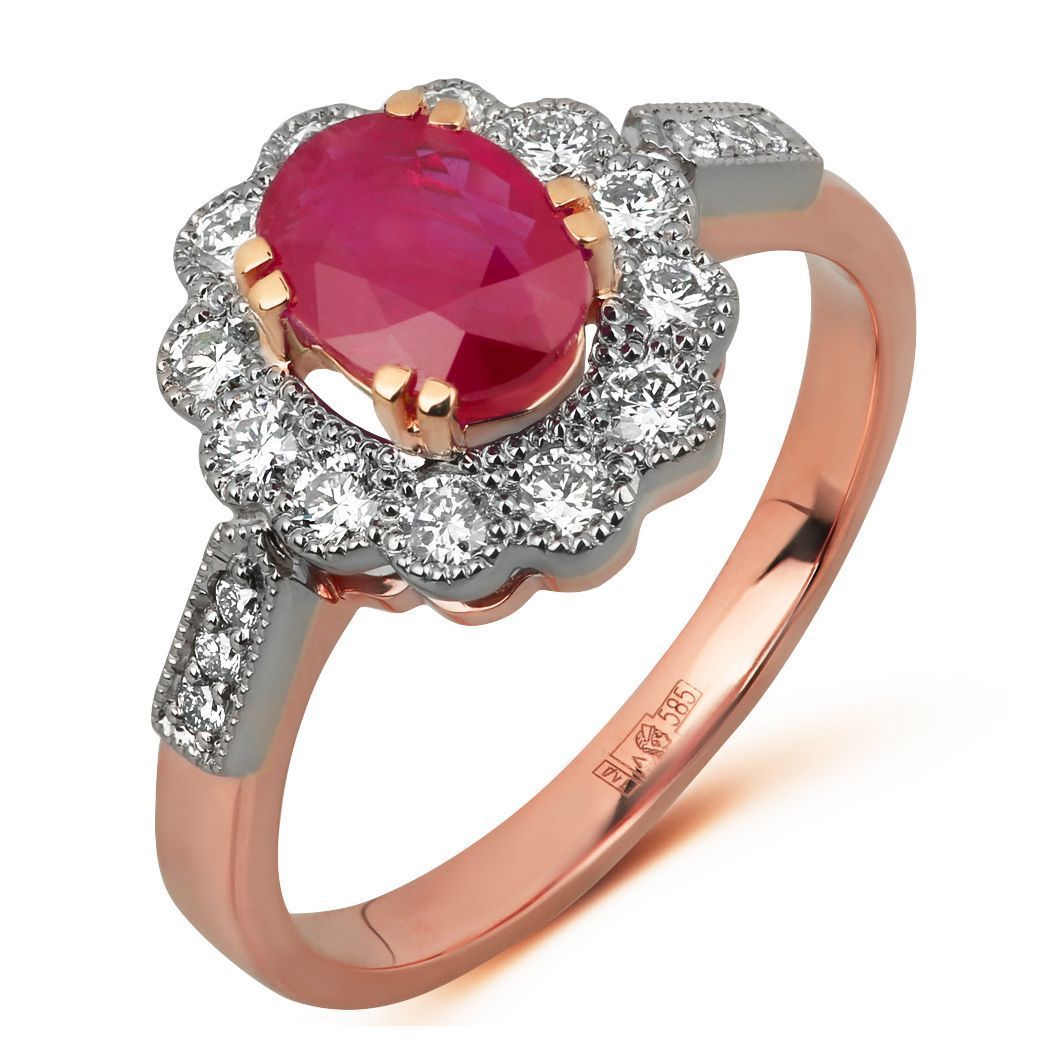 Кольцо из красного золота с бриллиантами и рубином
