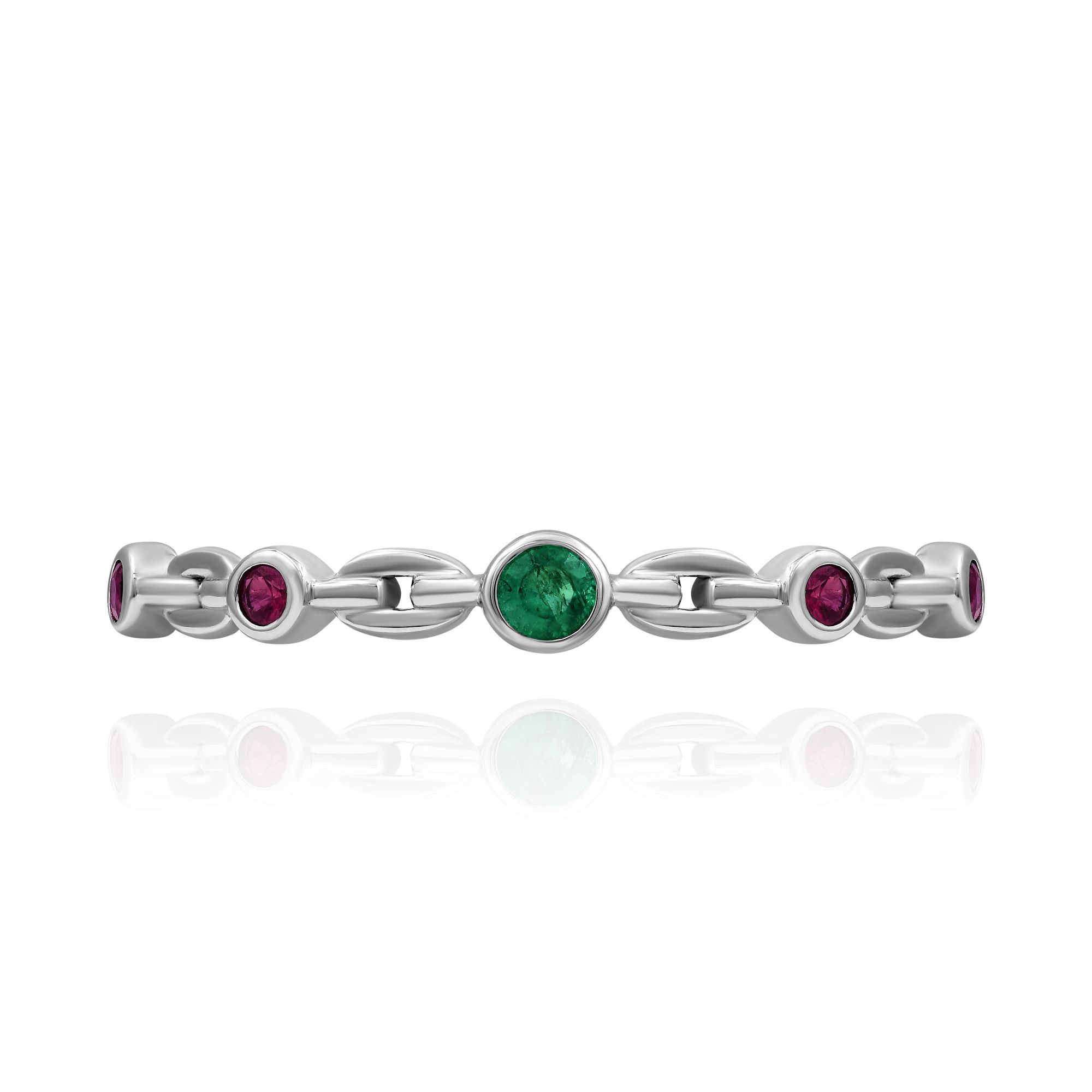 Кольцо из белого золота с изумрудом, бриллиантом и рубинами