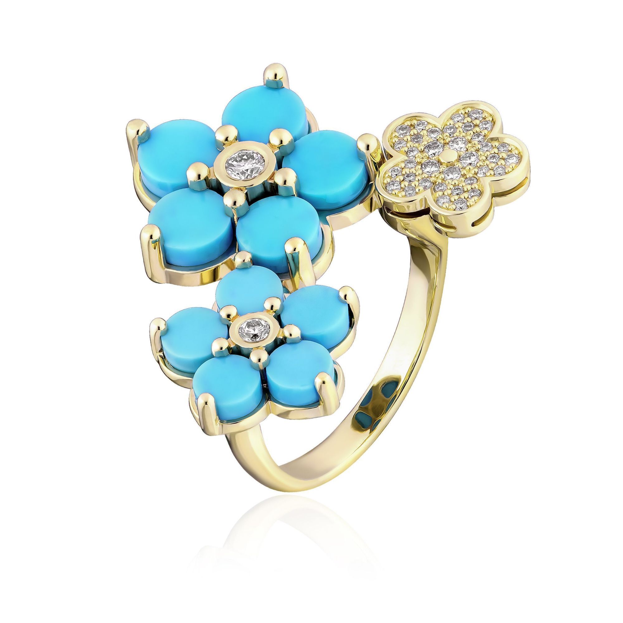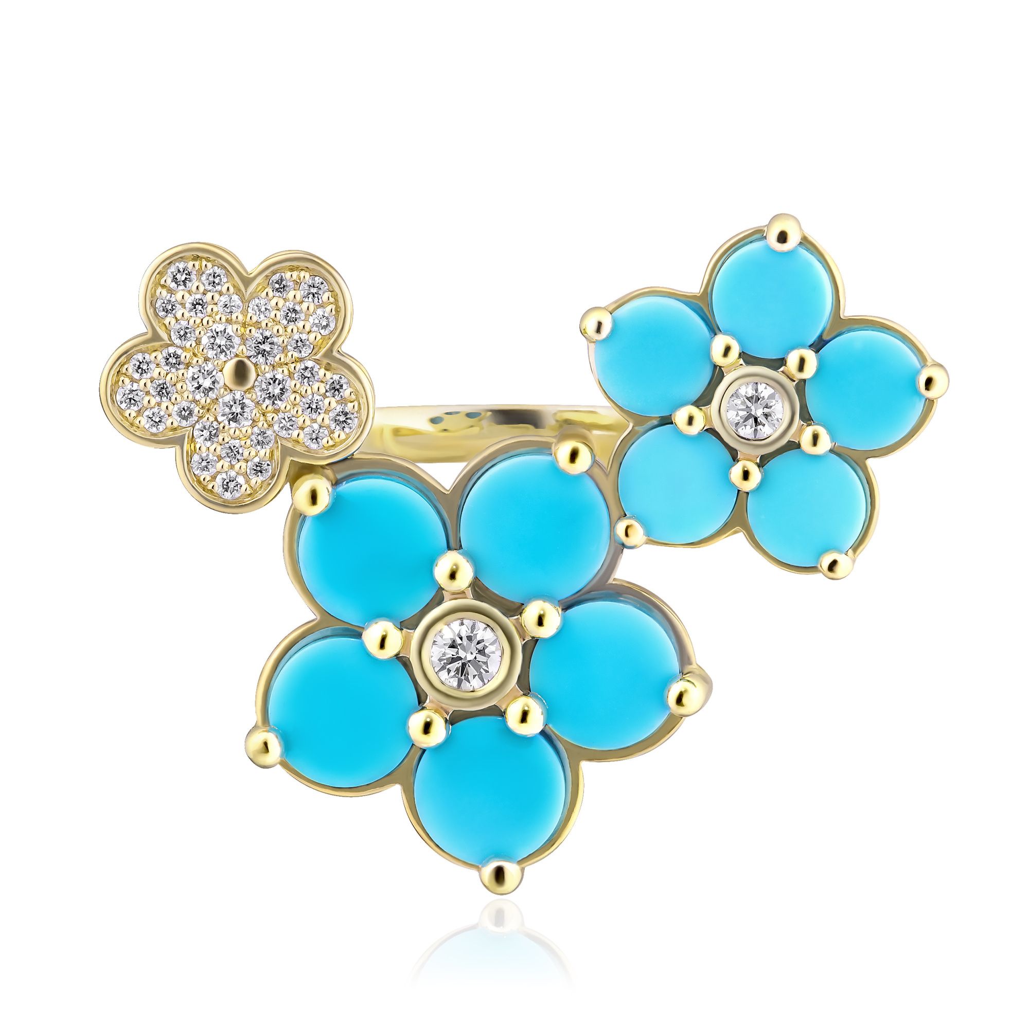 Кольцо из желтого золота с бирюзой и бриллиантами