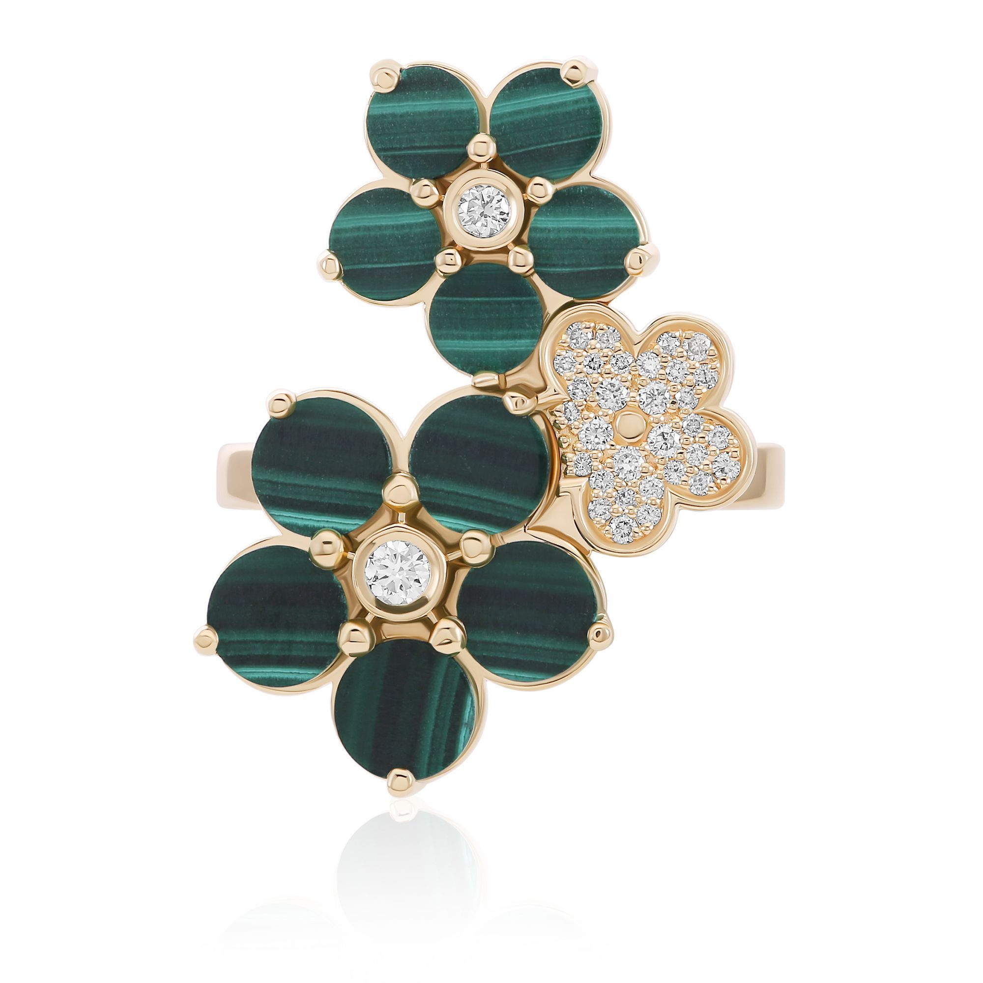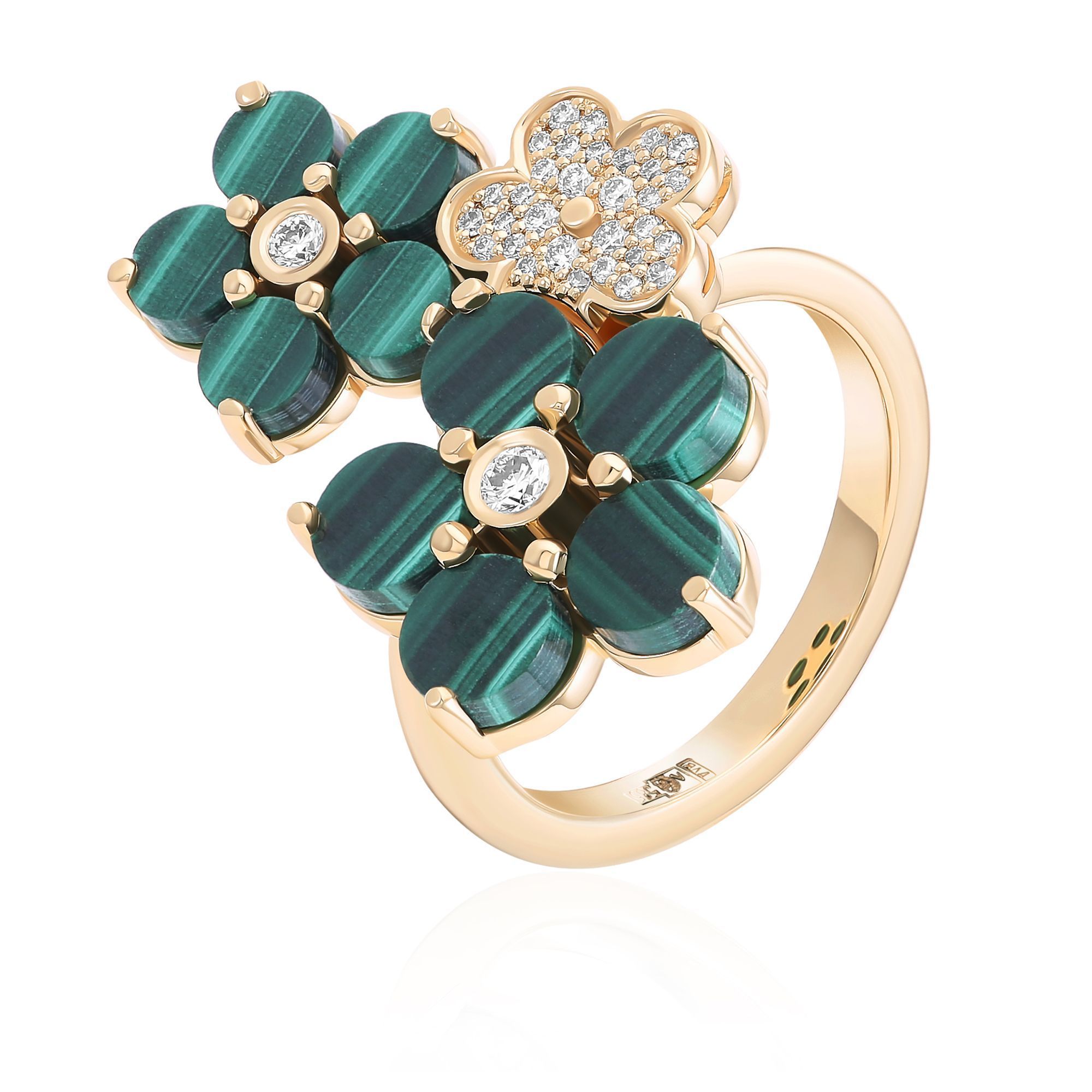 Кольцо из желтого золота с малахитом и бриллиантами