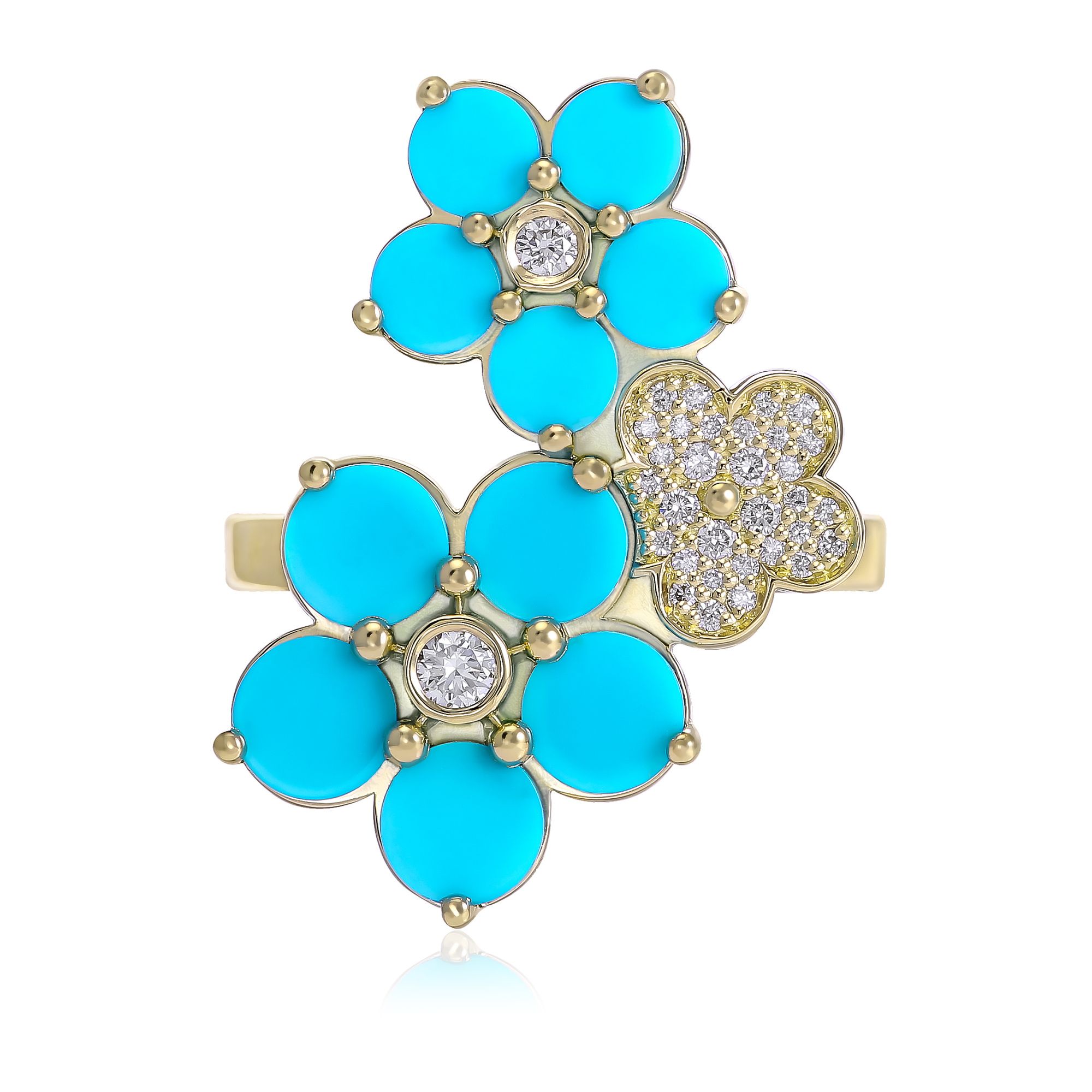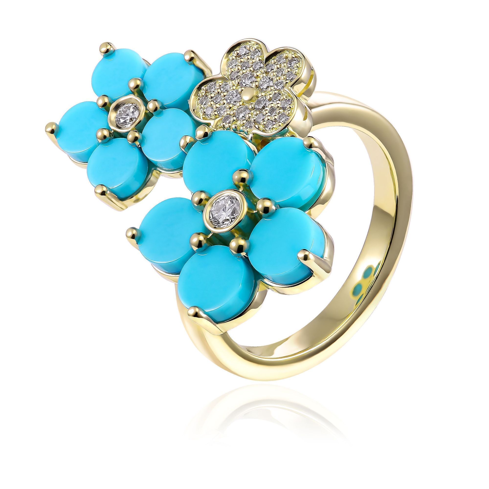Кольцо из желтого золота с бирюзой и бриллиантами