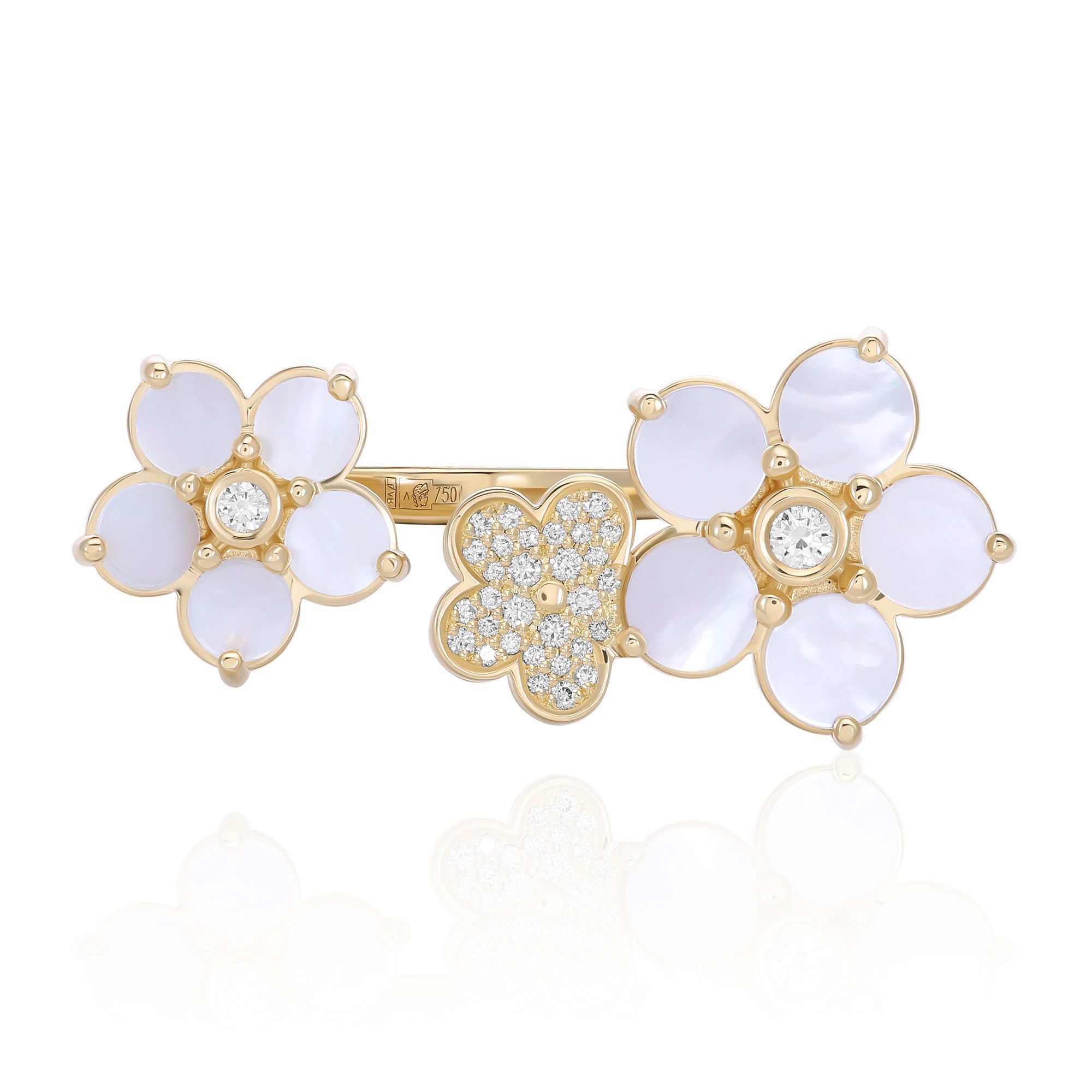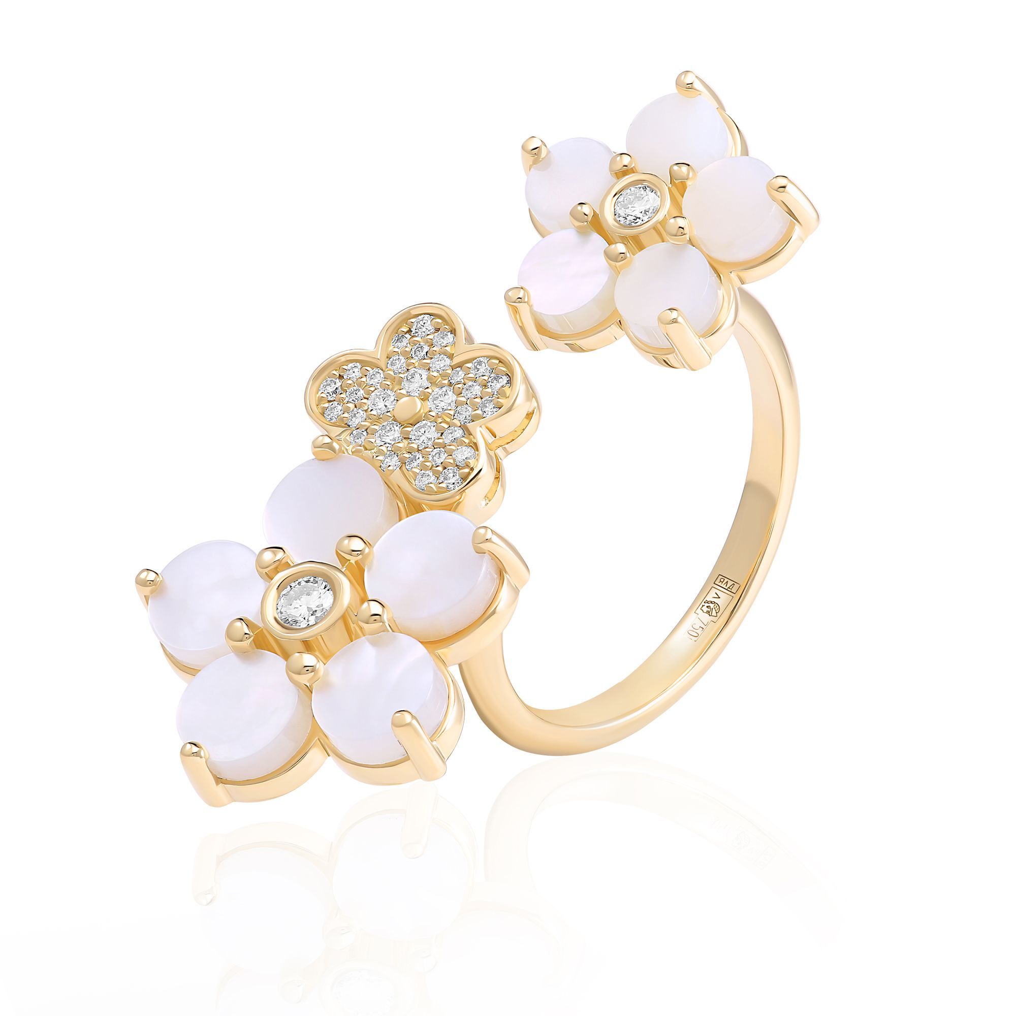 Кольцо из желтого золота с перламутром и бриллиантами
