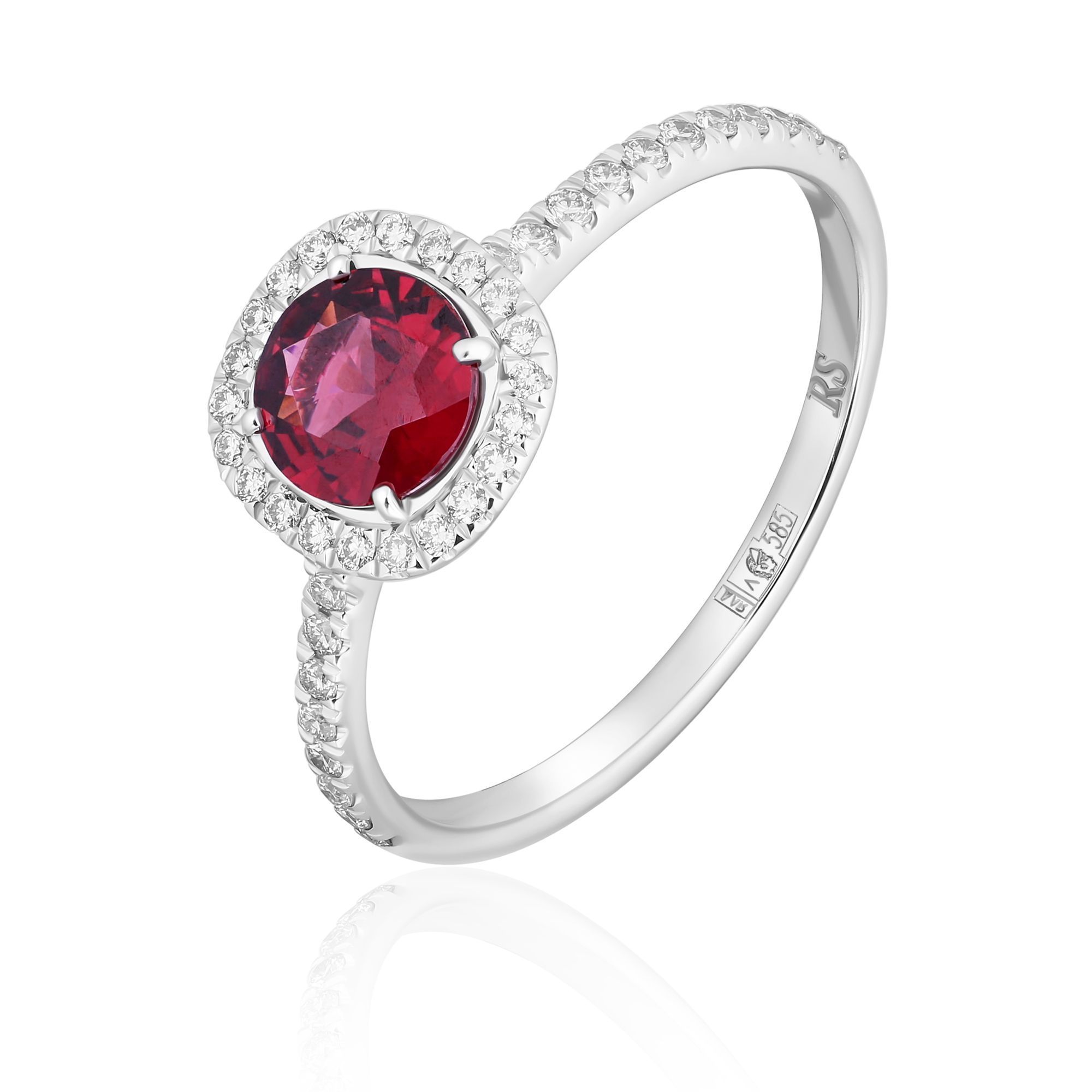 Кольцо из белого золота с бриллиантами и родолит
