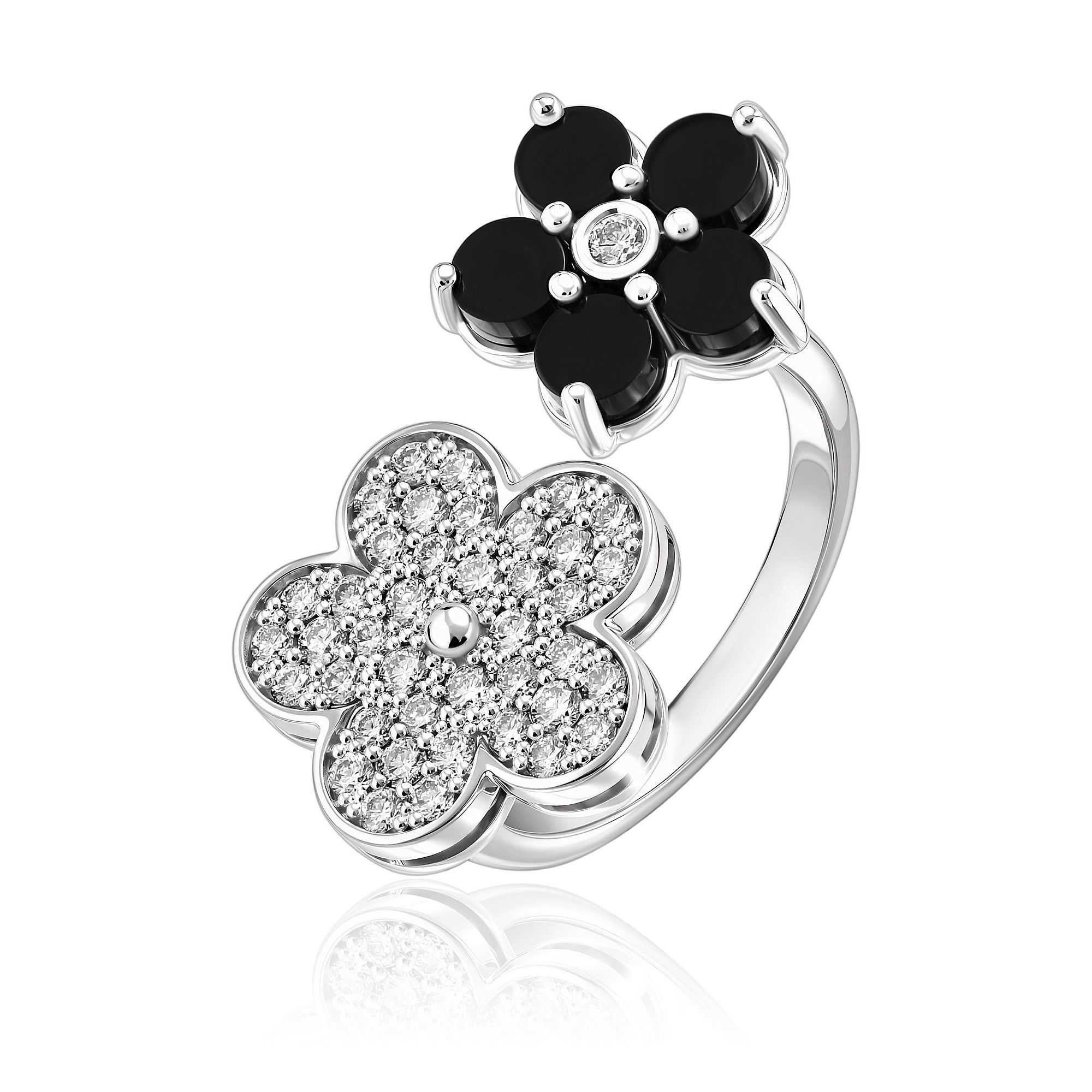 Кольцо из белого золота с ониксом и бриллиантами