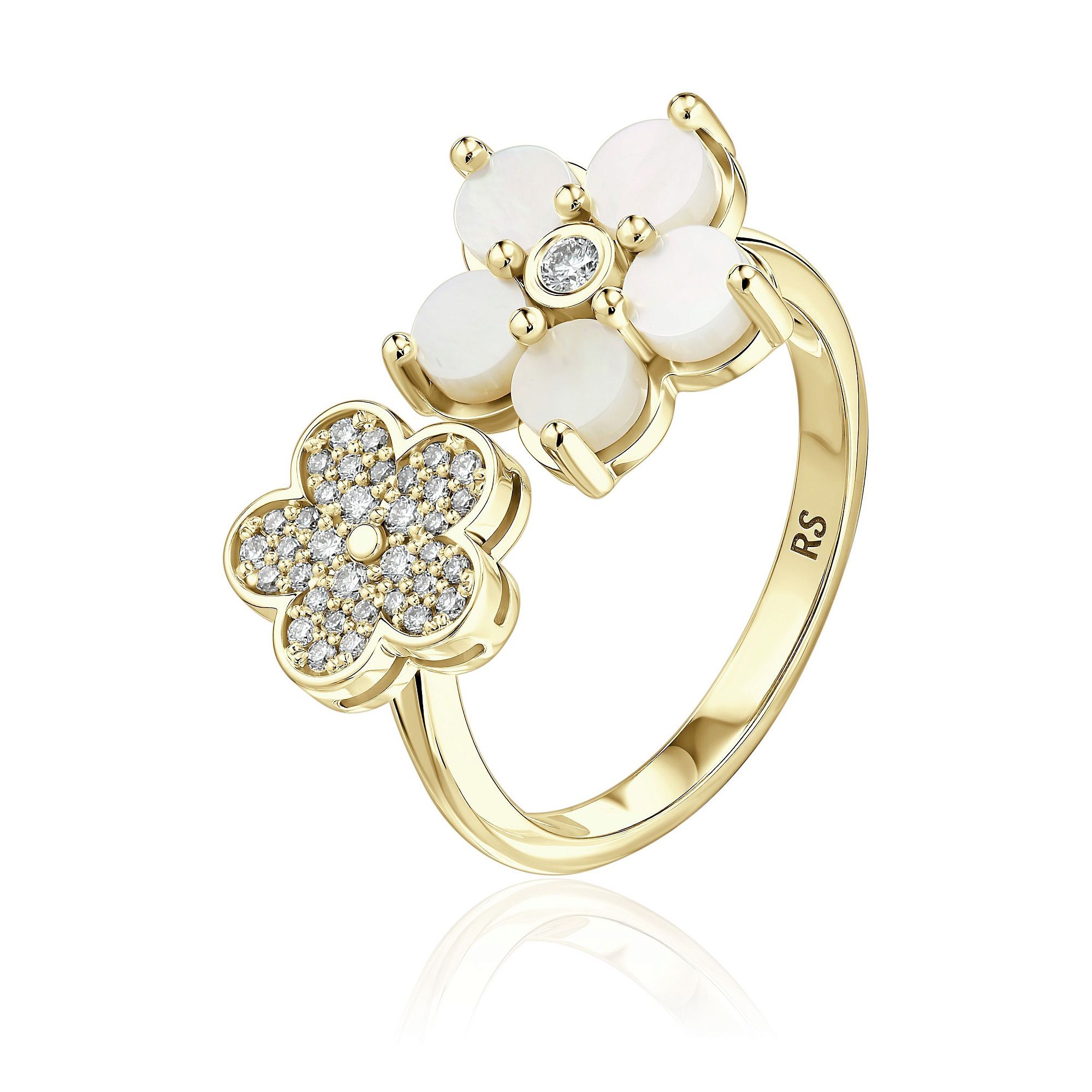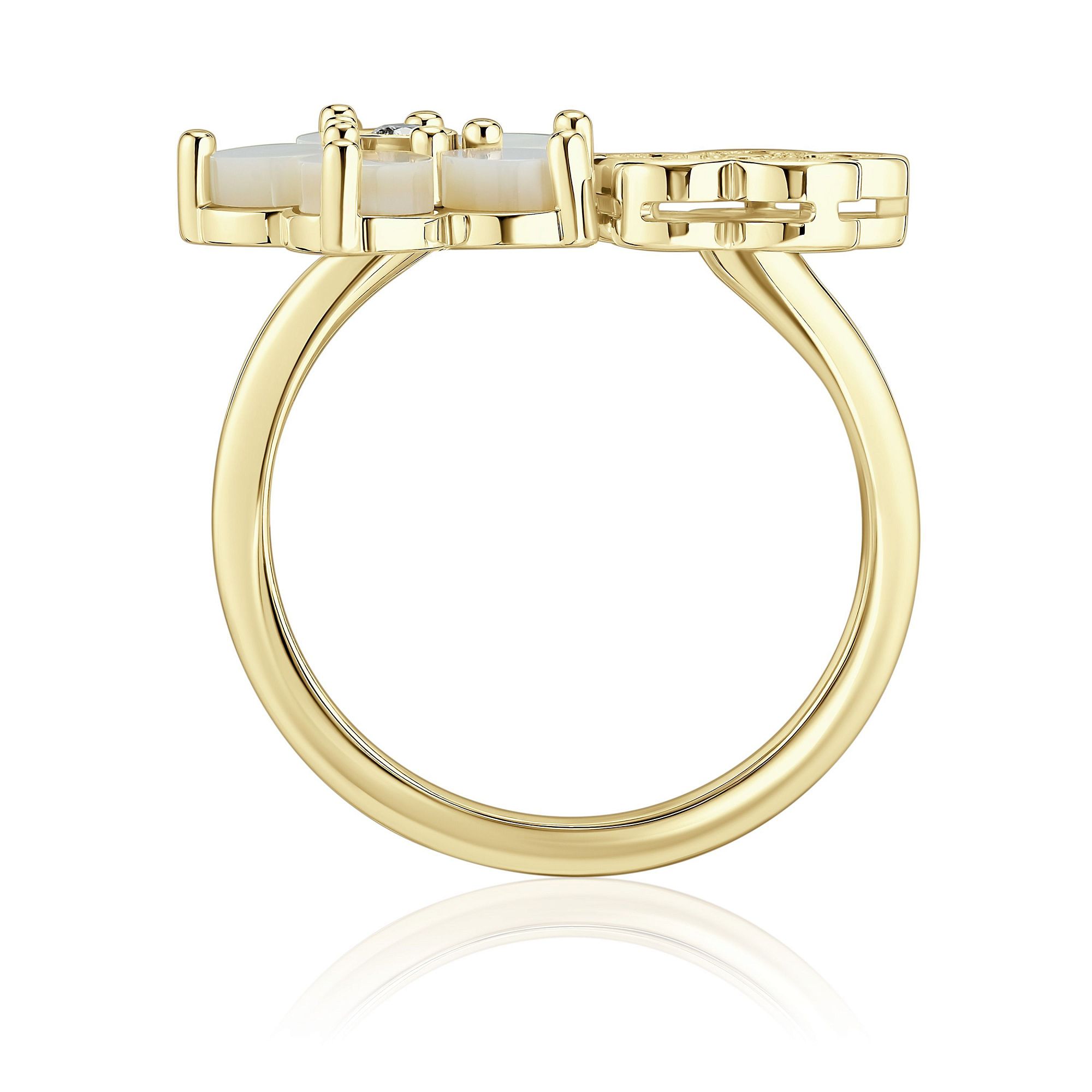 Кольцо из желтого золота с перламутром и бриллиантами