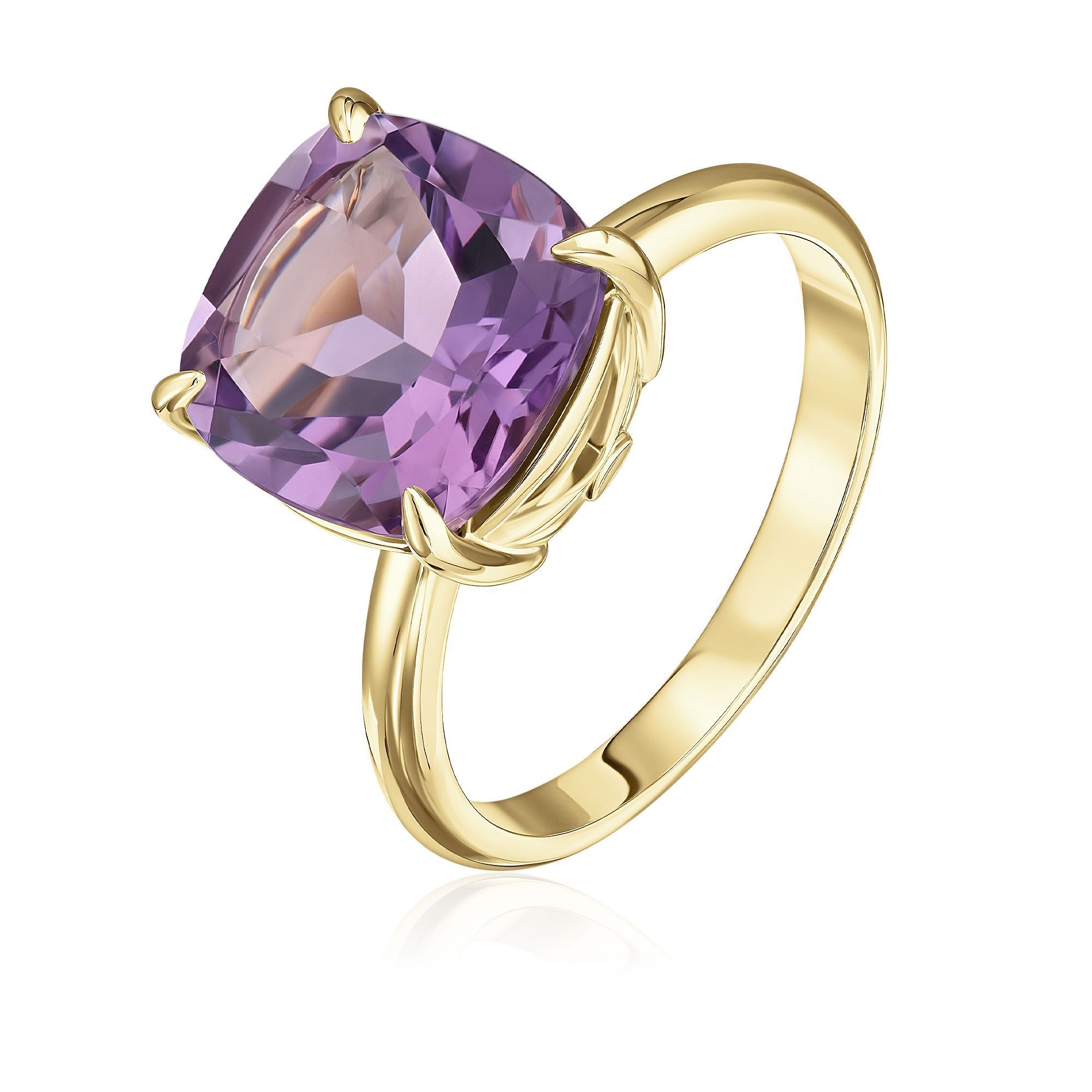 Кольцо из желтого золота с бриллиантом и аметистом