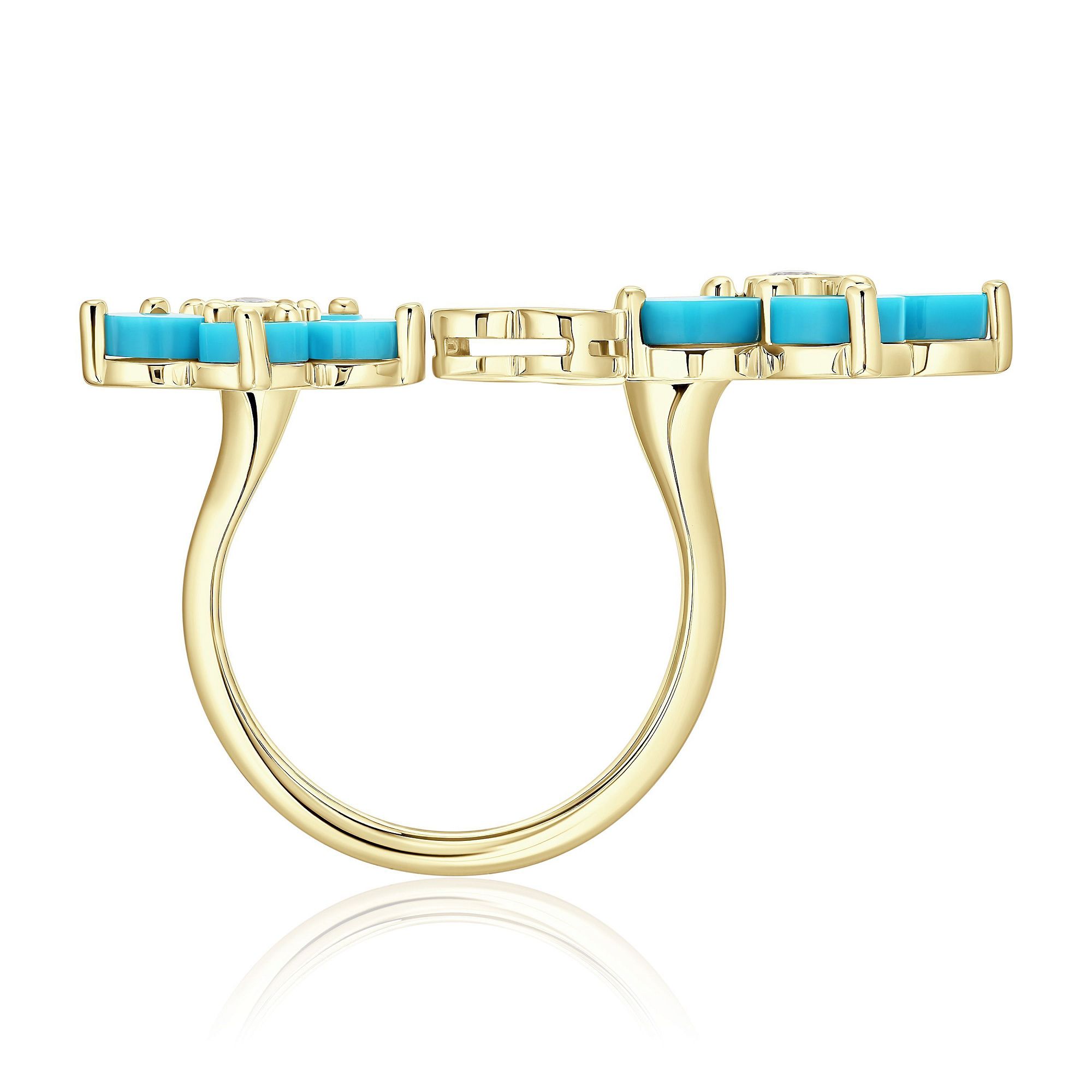 Кольцо из желтого золота с бирюзой и бриллиантами