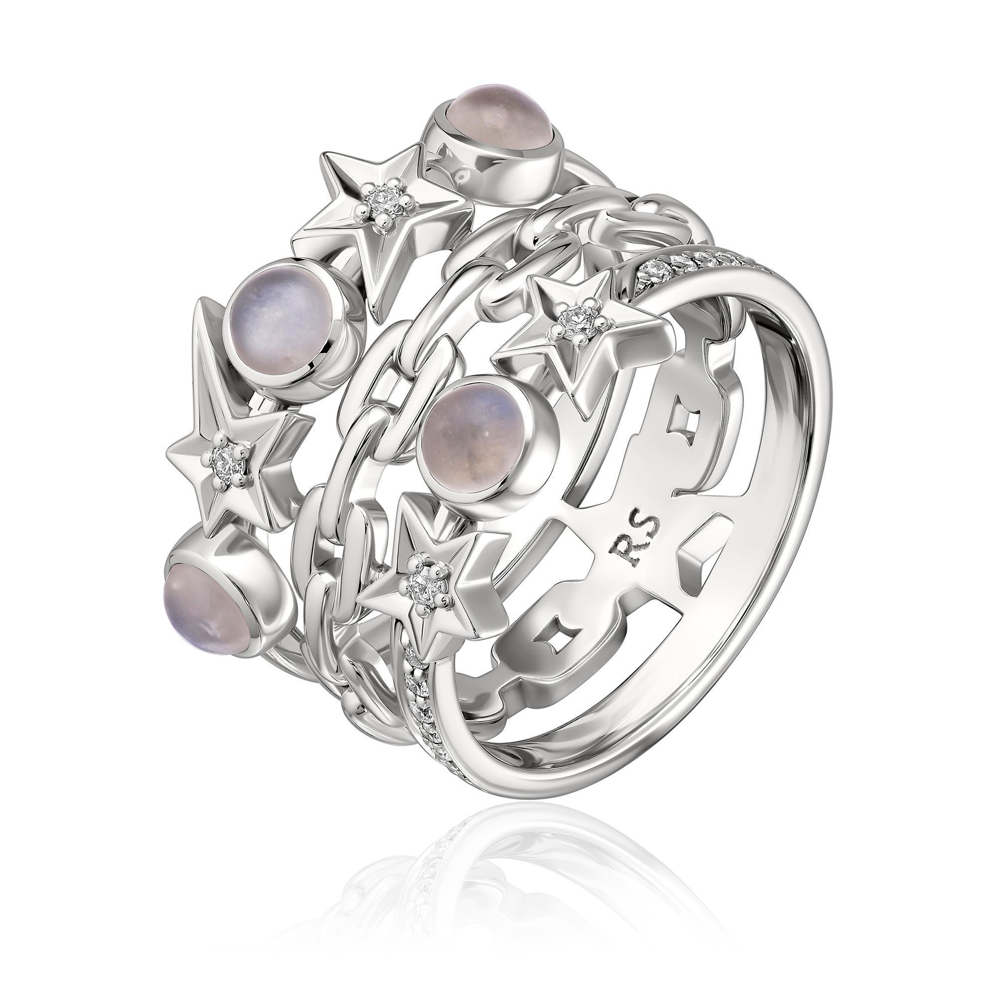 Кольцо из белого золота с лунным камнем и бриллиантами
