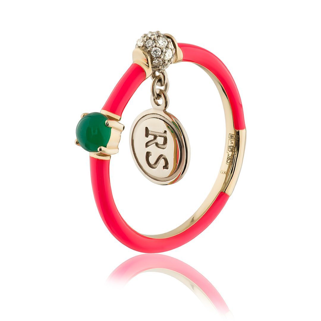 Кольцо из желтого золота с хризопразом и бриллиантами