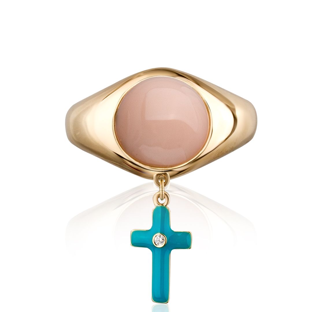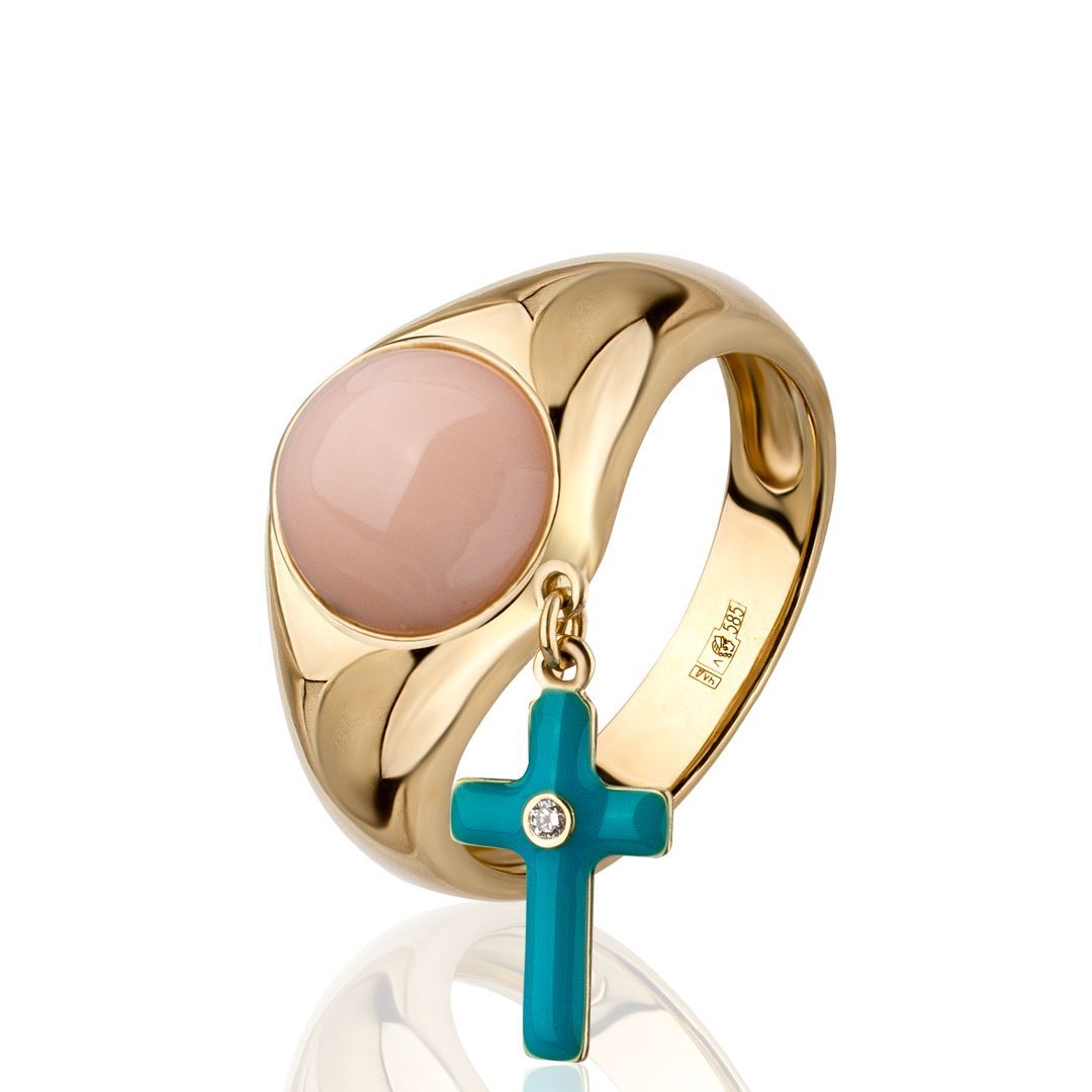 Кольцо из желтого золота с кораллом и бриллиантом