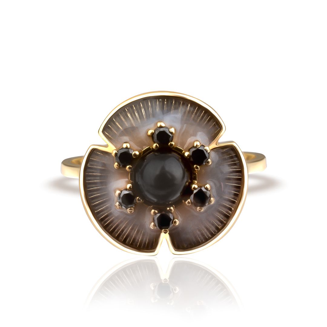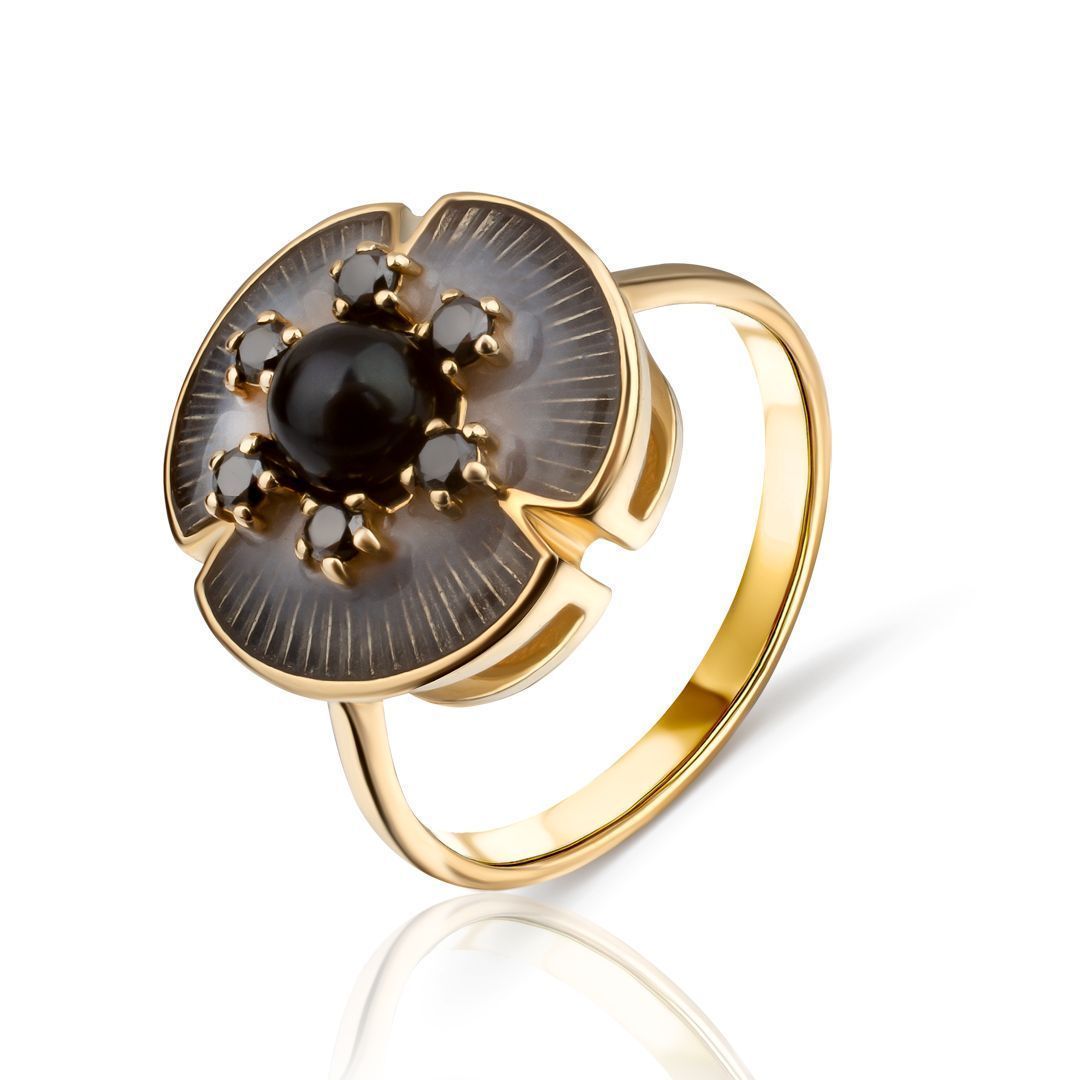 Кольцо из желтого золота с жемчугом и бриллиантами