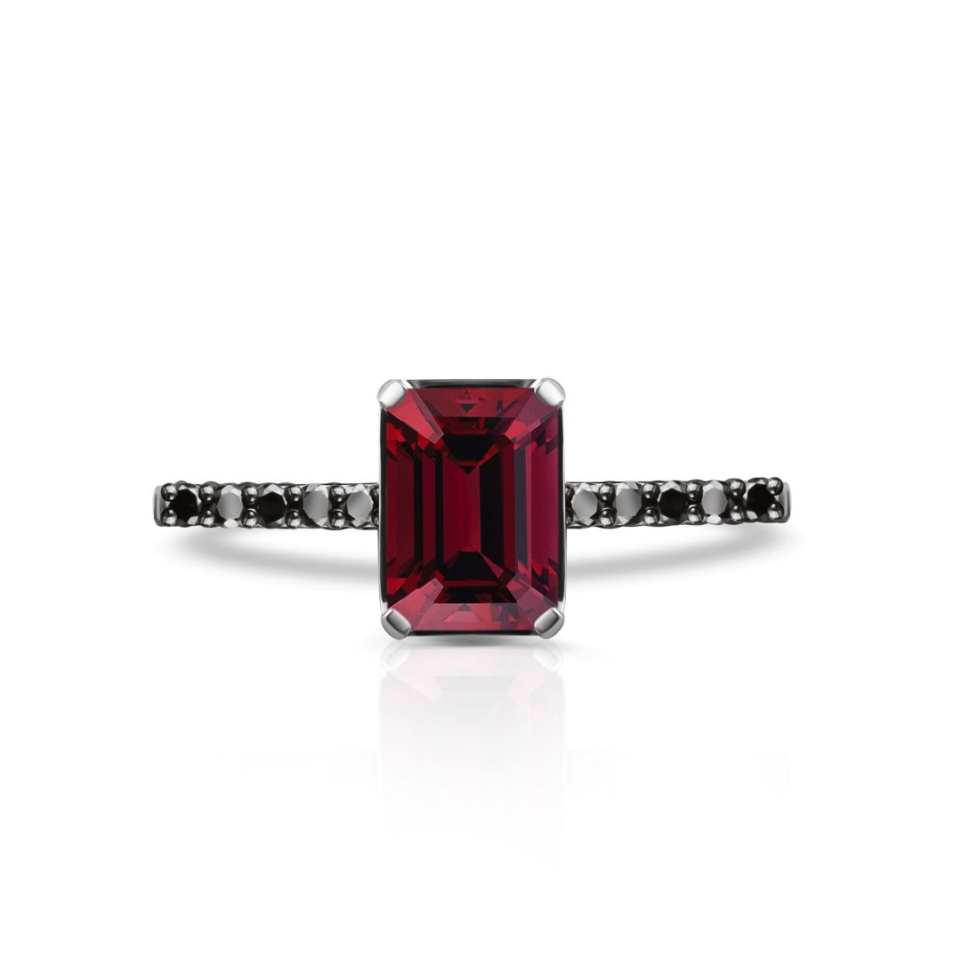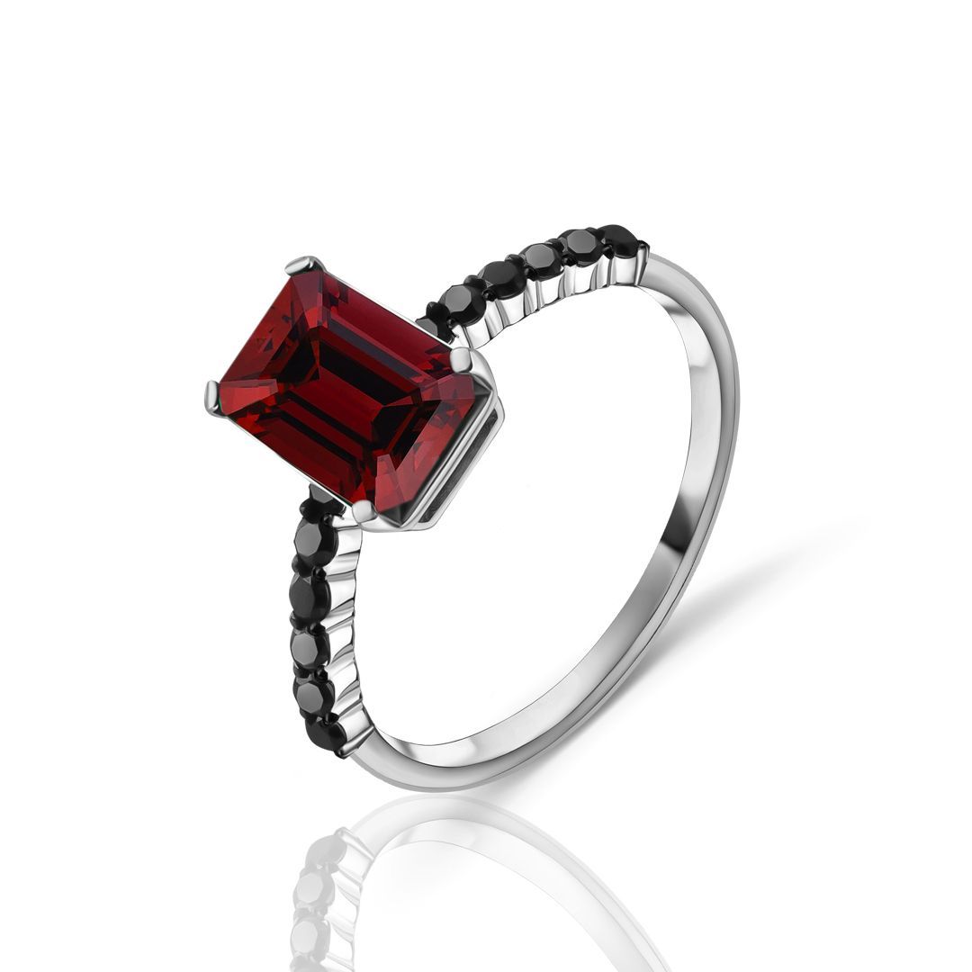 Кольцо из белого золота с гранатом и бриллиантами
