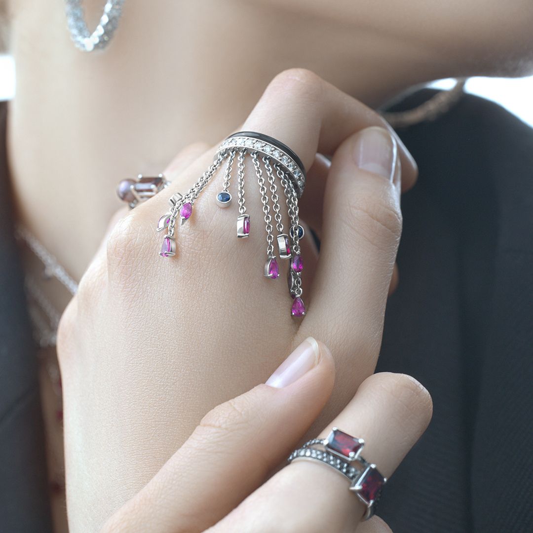 В основу дизайна коллекции NIGHTSHADE легли готические элементы, авторски интерпретированные в современном видении. В украшениях комбинируются белое золото и черные бриллианты, а яркие самоцветы идеально гармонируют между собой и образуют контрастные сочетания. В коллекции прослеживается особая символика, которая воплощена в крестах-подвесках.