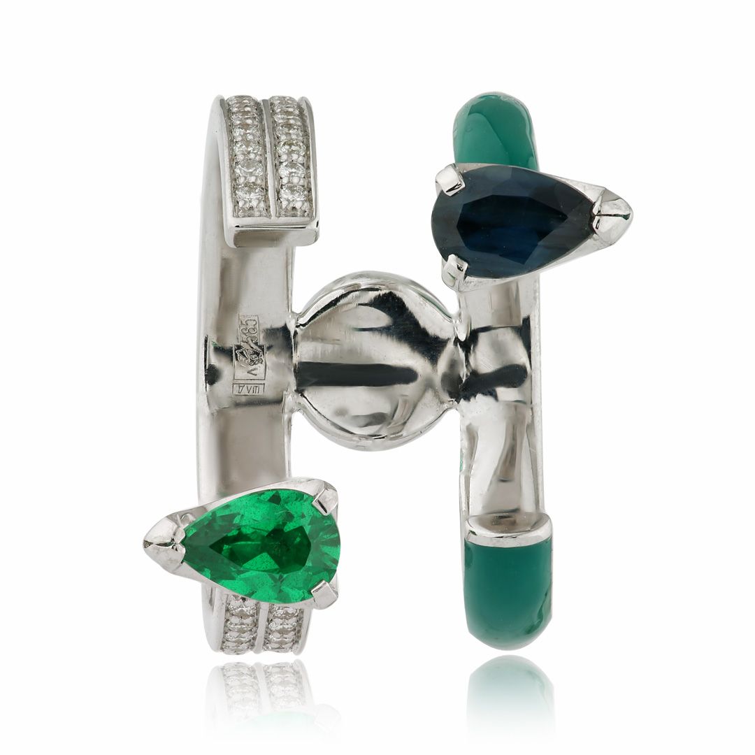 Кольцо из белого золота с сапфиром, гранатом и бриллиантами