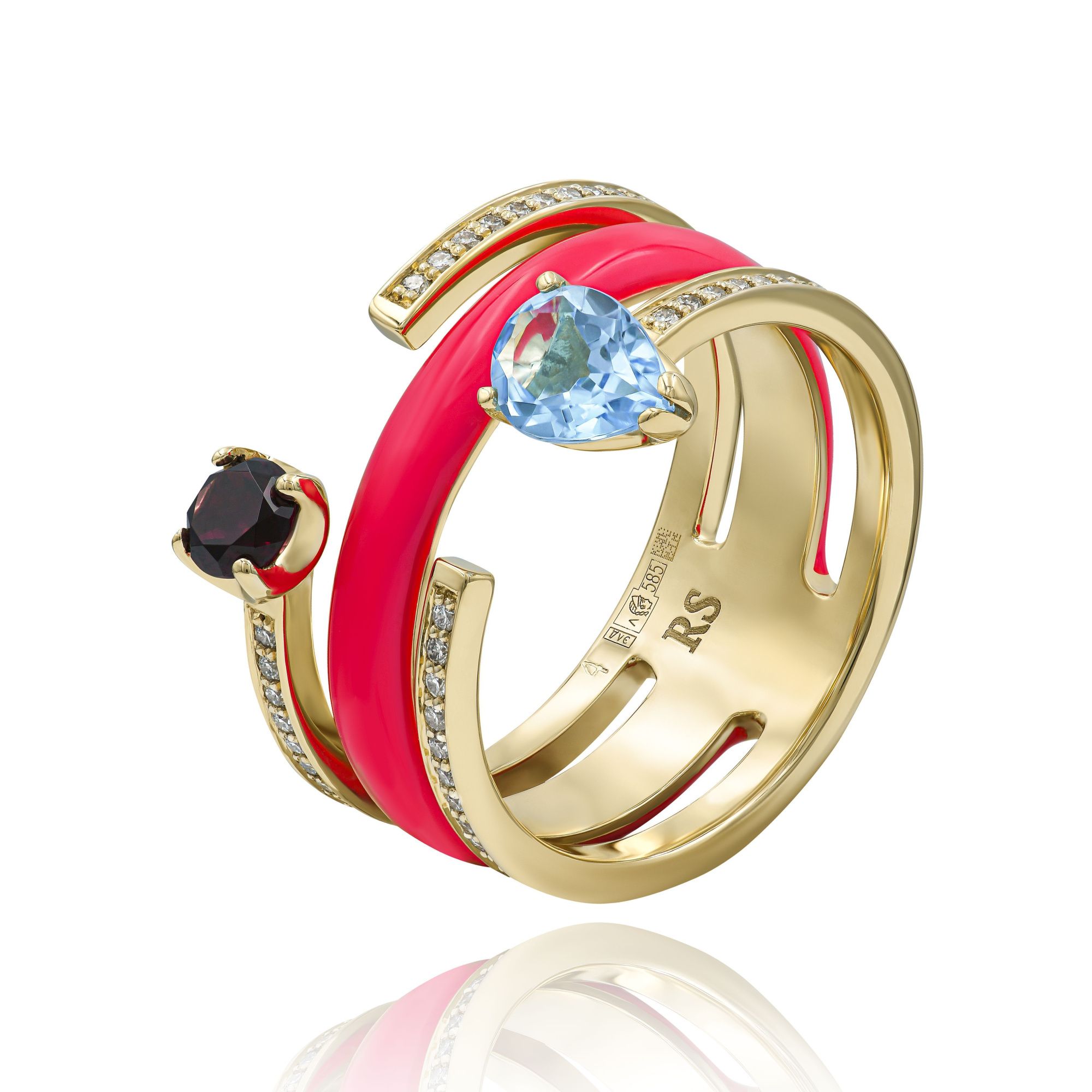 Кольцо из желтого золота с топазом, бриллиантами и альмандином