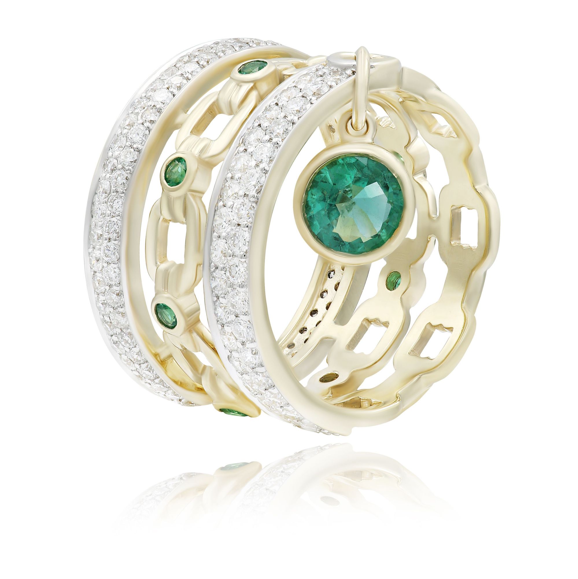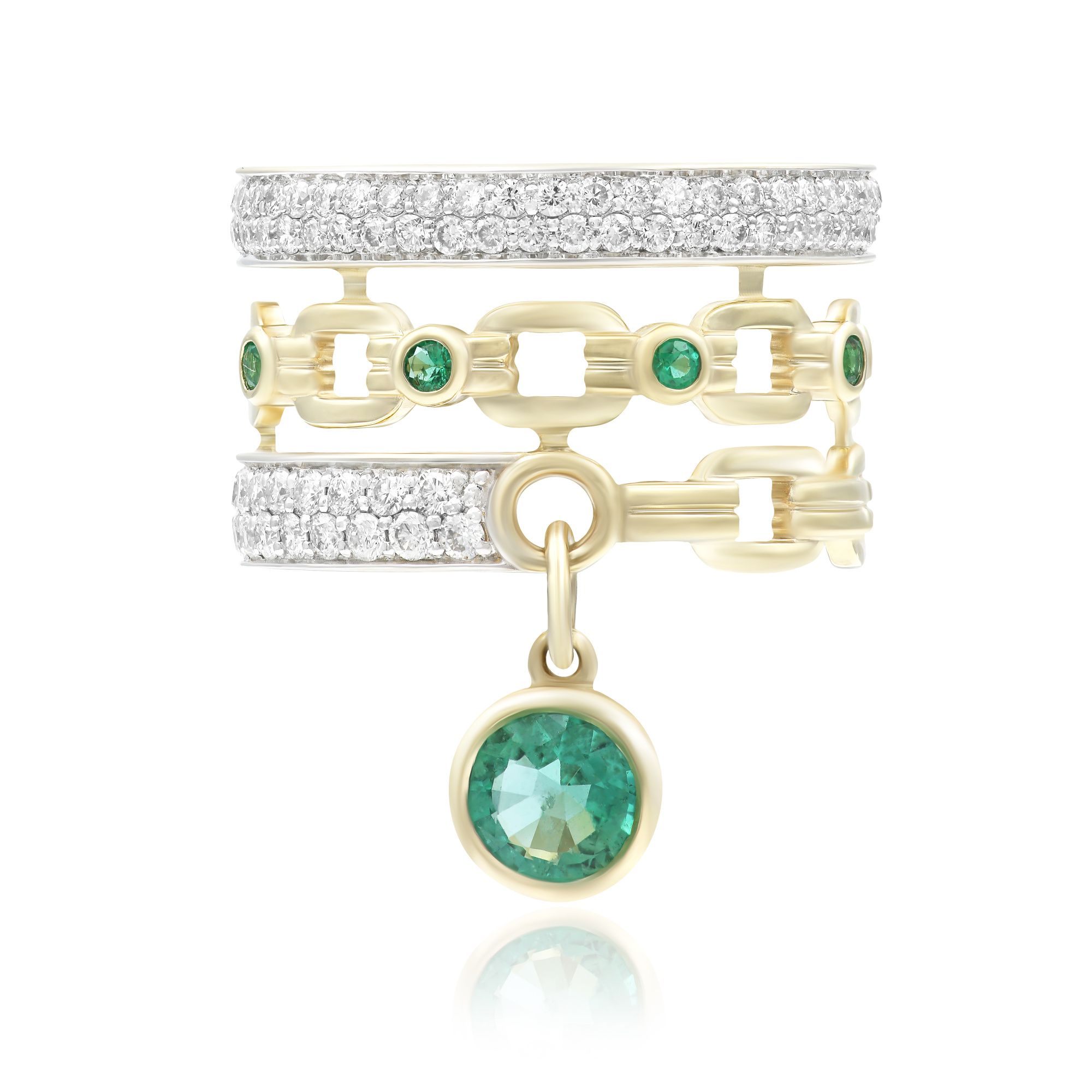 Кольцо из желтого золота с изумрудами и бриллиантами