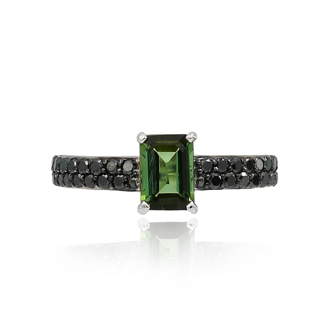 Кольцо из белого золота с турмалином и бриллиантами