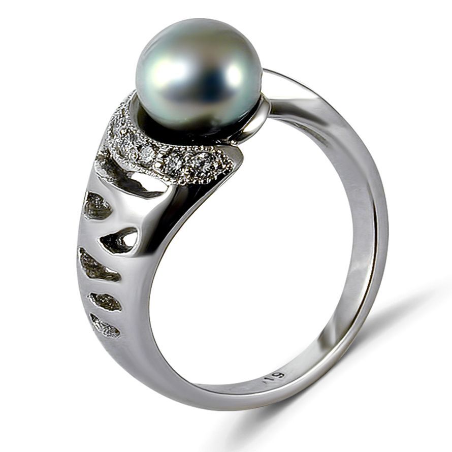 Кольцо из платины с бриллиантами и жемчугом