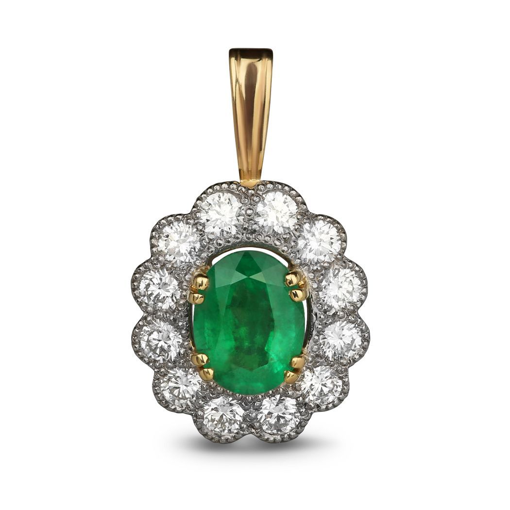 Подвеска из желтого золота с бриллиантами и изумрудом