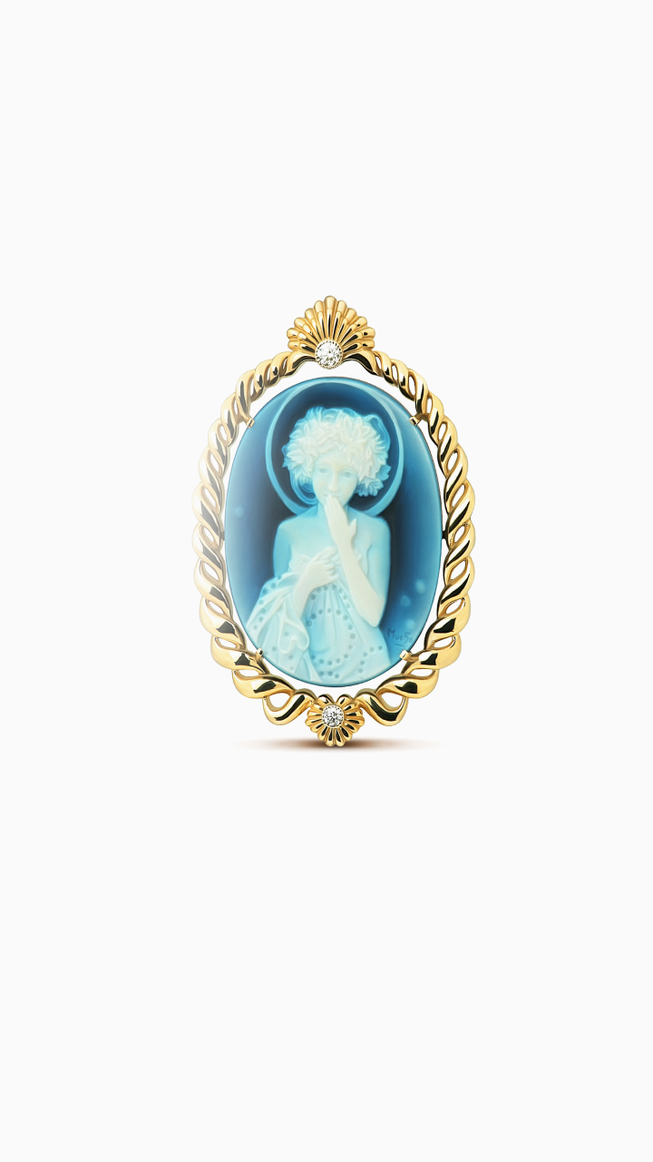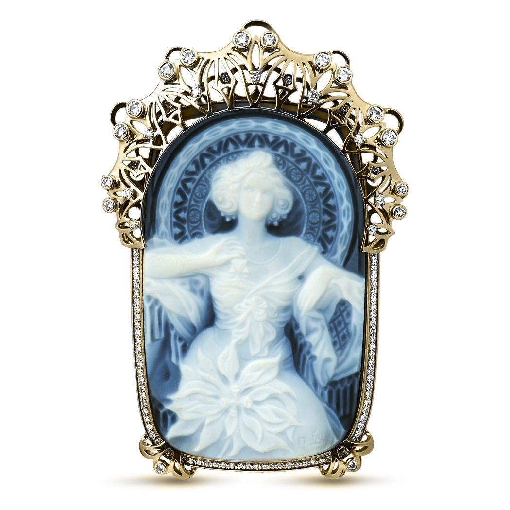Каждое изделие из этой коллекции – маленькое произведение искусства. Кольца, серьги, подвески выполнены из агата и кварца разных оттенков. Профиль дамы выточен с небывалым мастерством, а переходы от светлых оттенков к более темным визуально делают его объемным.