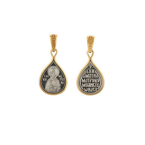 Подвеска-образ двухсторонний «Св.Матрона Московская» «Молитва Св. Матроне Московской» из красного золота