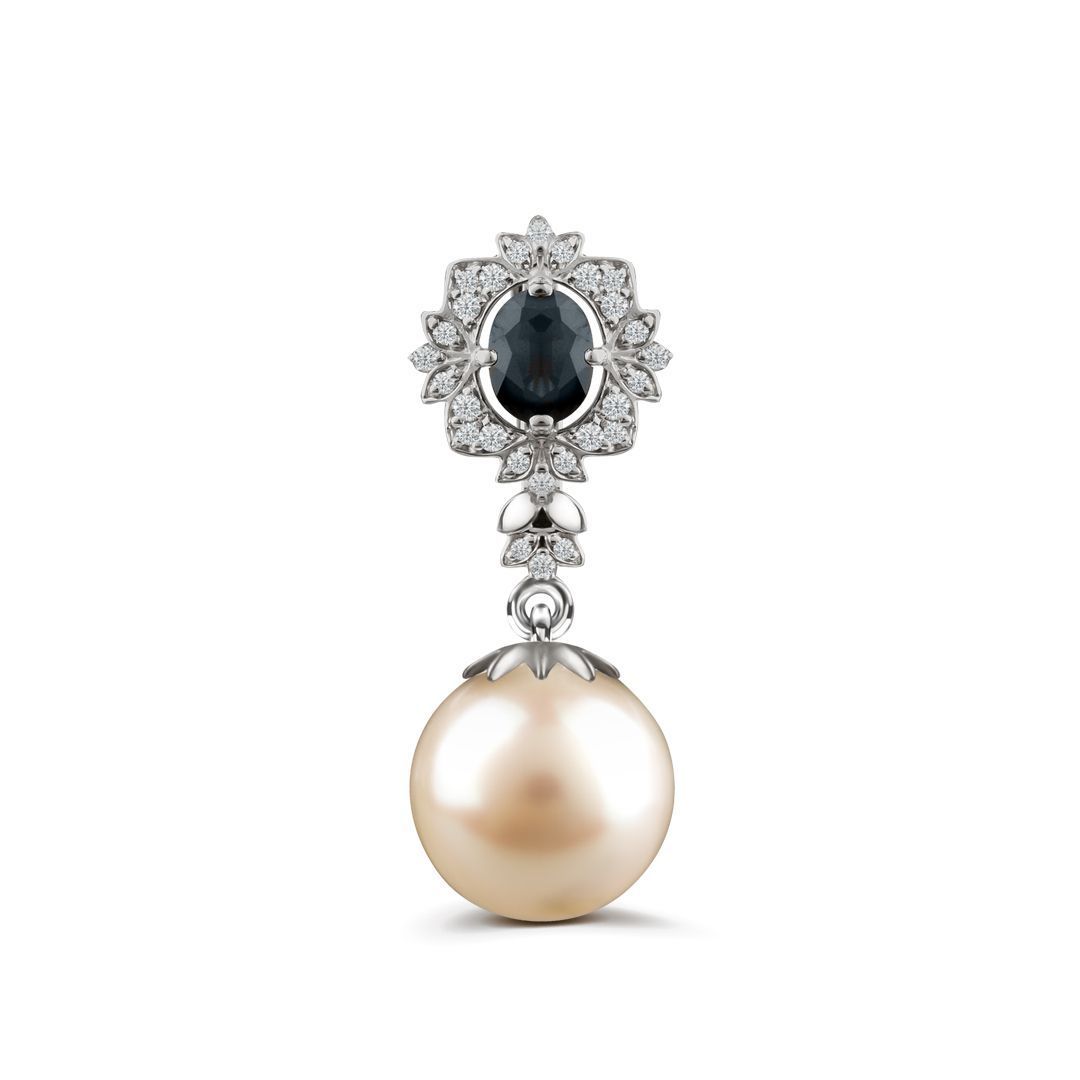 Подвеска из белого золота с сапфиром, бриллиантами и жемчугом