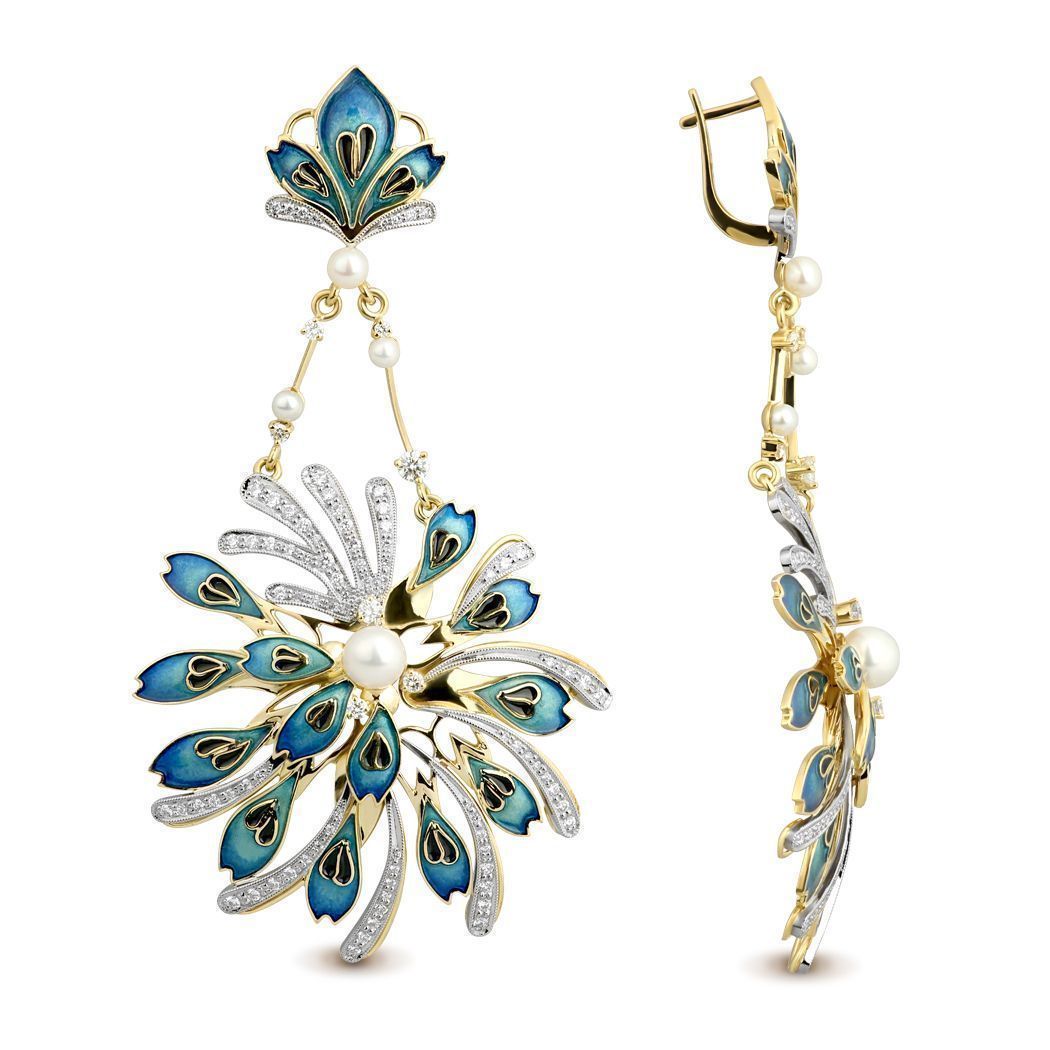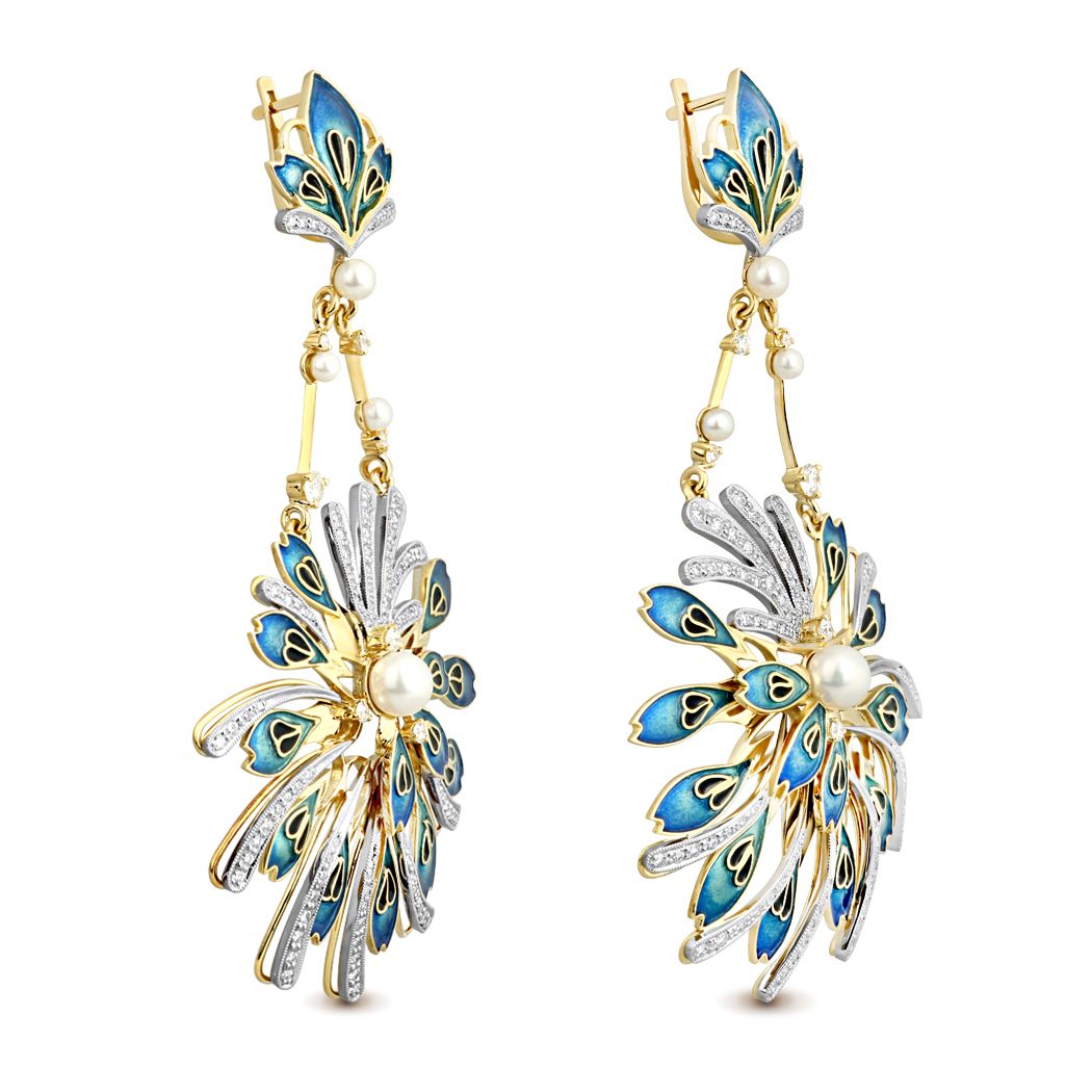 Серьги из белого золота с бриллиантами и жемчугом