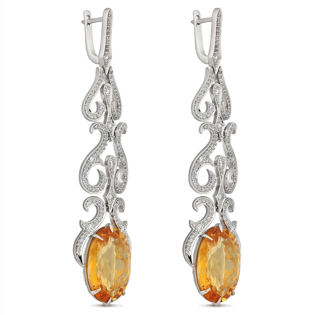 Серьги из белого золота с бриллиантами и цитринами 3.8 ct