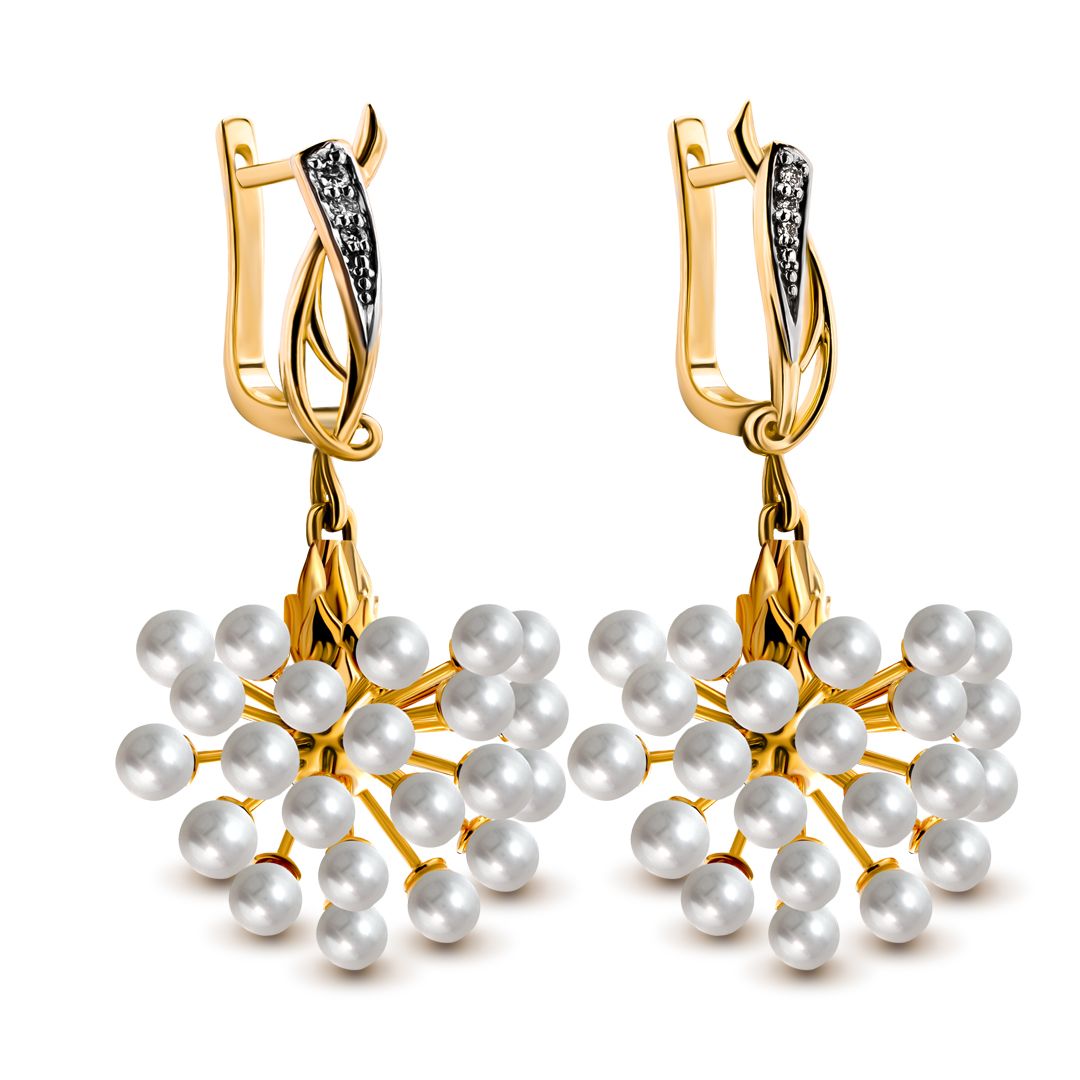 Серьги «Полевые цветы» из желтого золота с бриллиантами и жемчугом