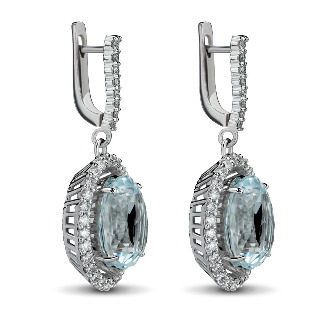 Серьги из белого золота с аквамаринами 2.28 ct и бриллиантами