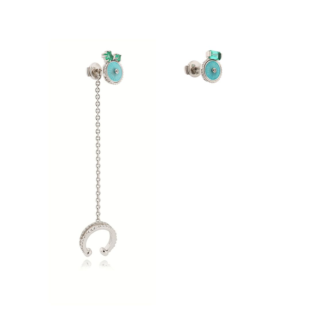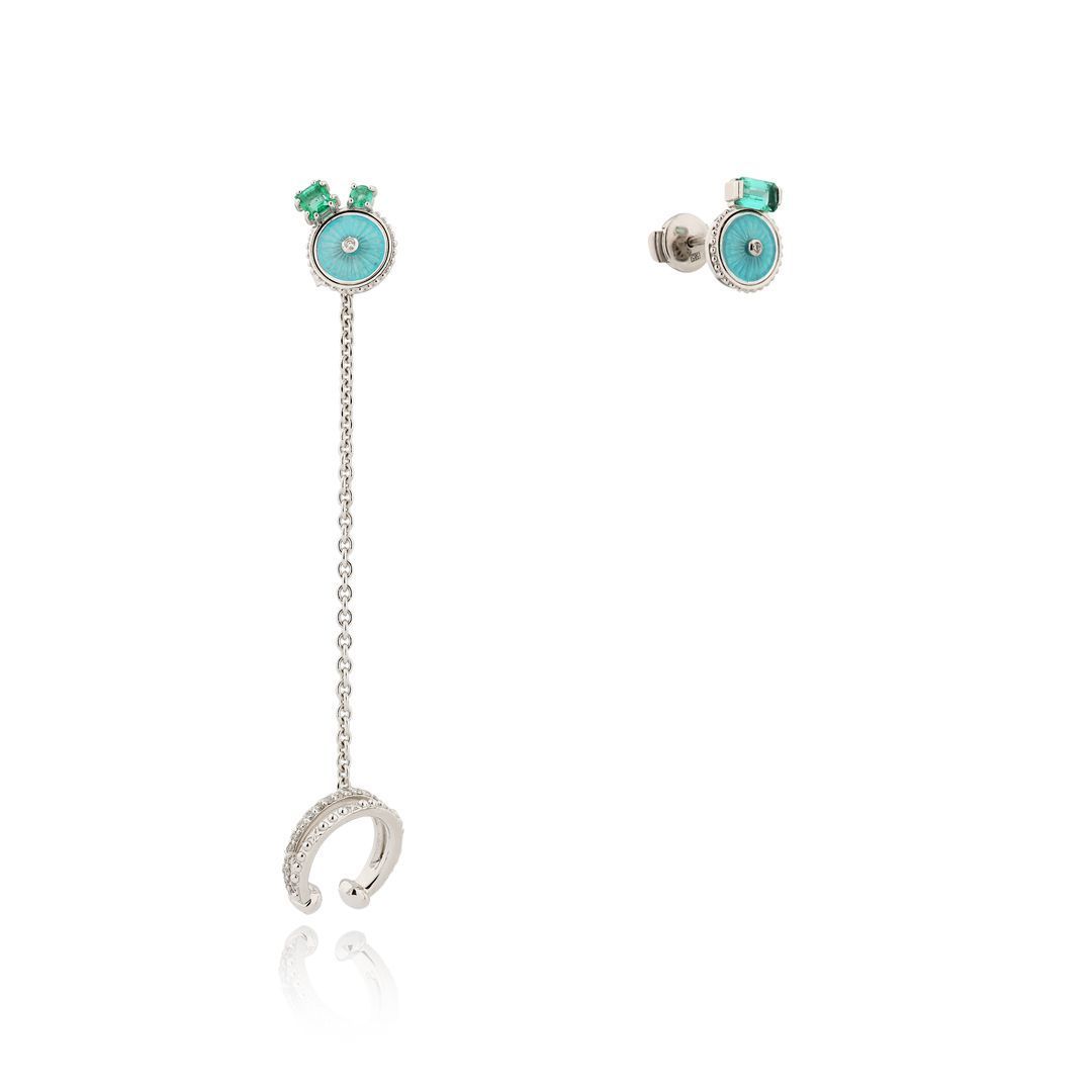 Пусеты из белого золота с изумрудом и бриллиантами