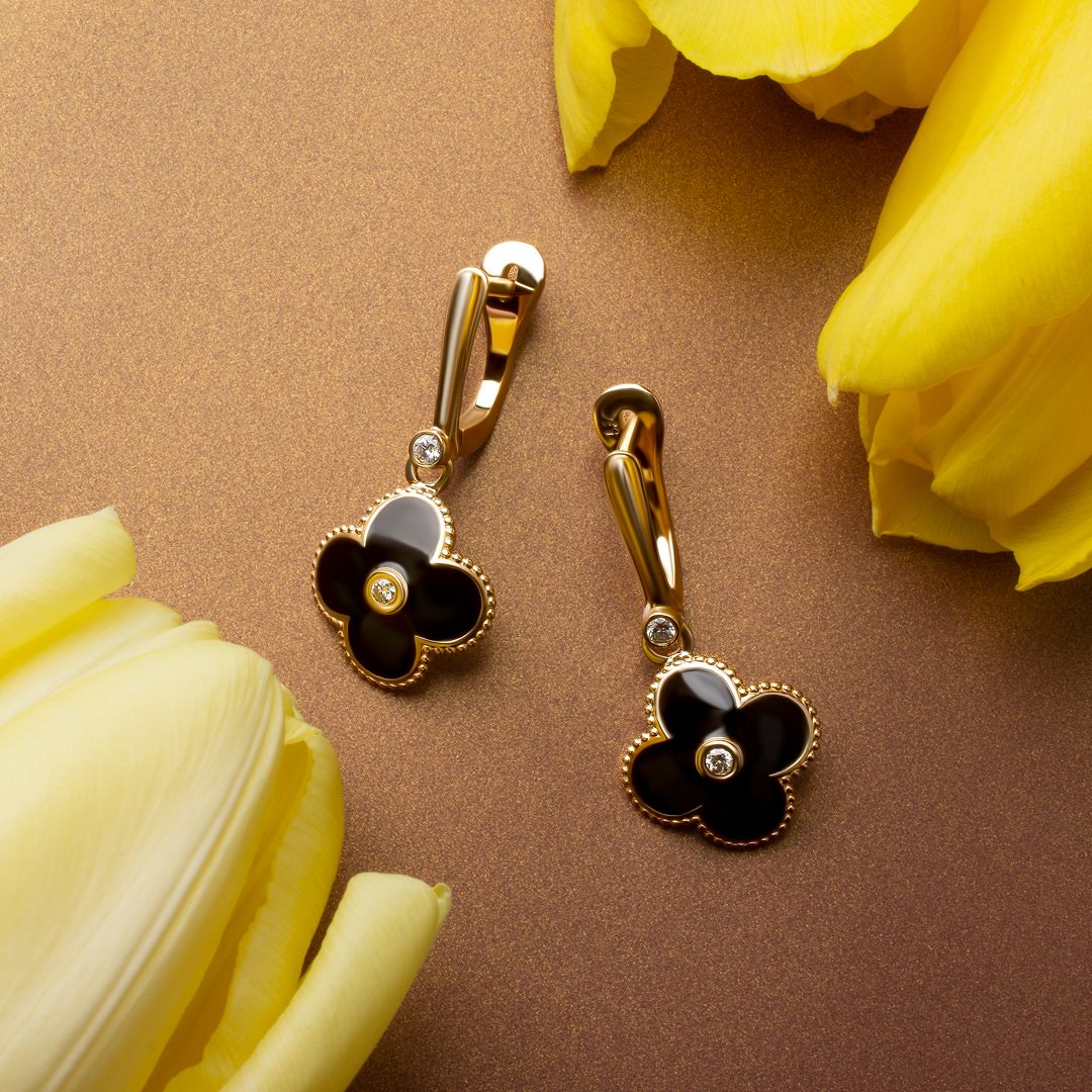 Серьги из желтого золота с бриллиантами