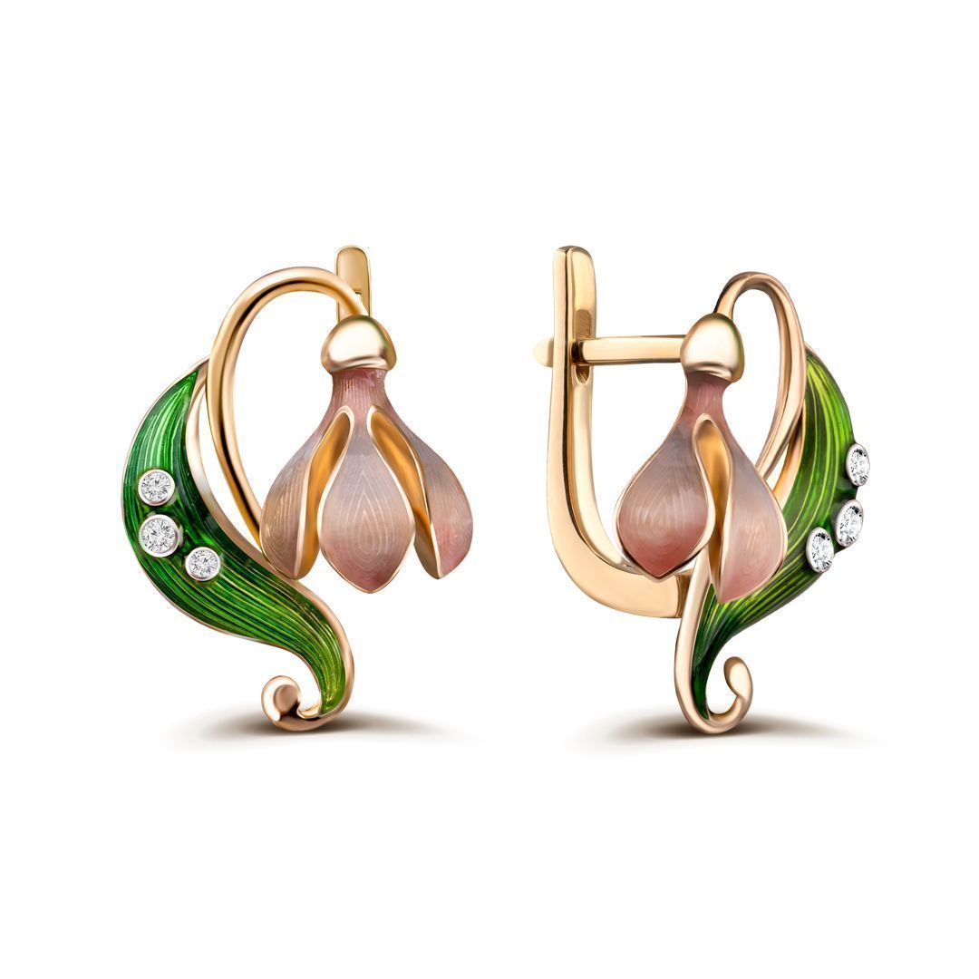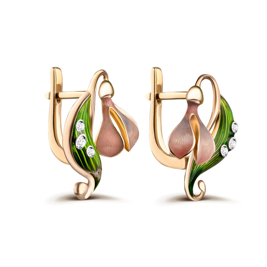 В коллекцию вошли украшения, выполненные в форме подснежников. Нежные и реалистичные оттенки цветам придает гильошированная эмаль – одна из самых эффектных ювелирных техник, которая стала известна благодаря Карлу Фаберже.