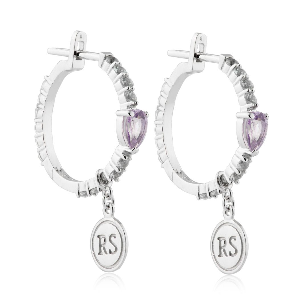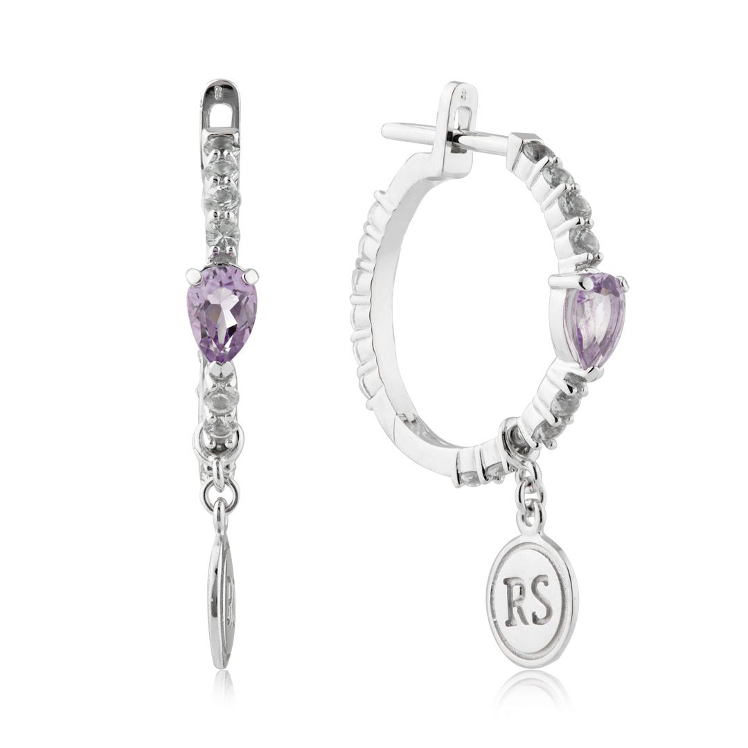 Серьги из белого золота с сапфирами и аметистами