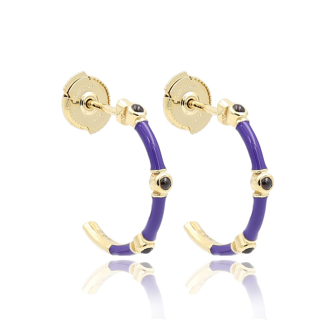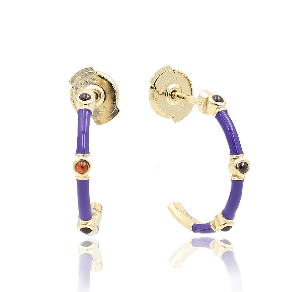 Пусеты из желтого золота с гранатами