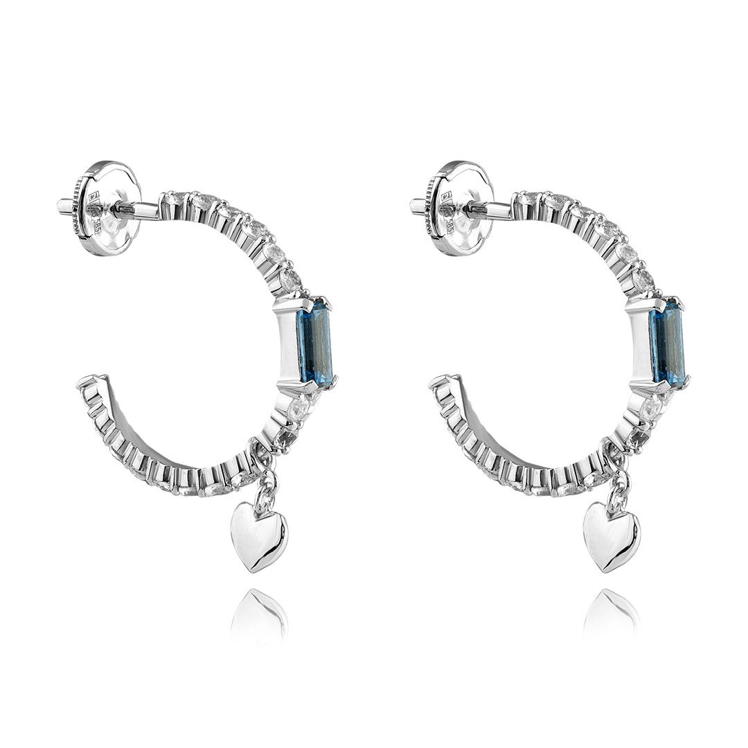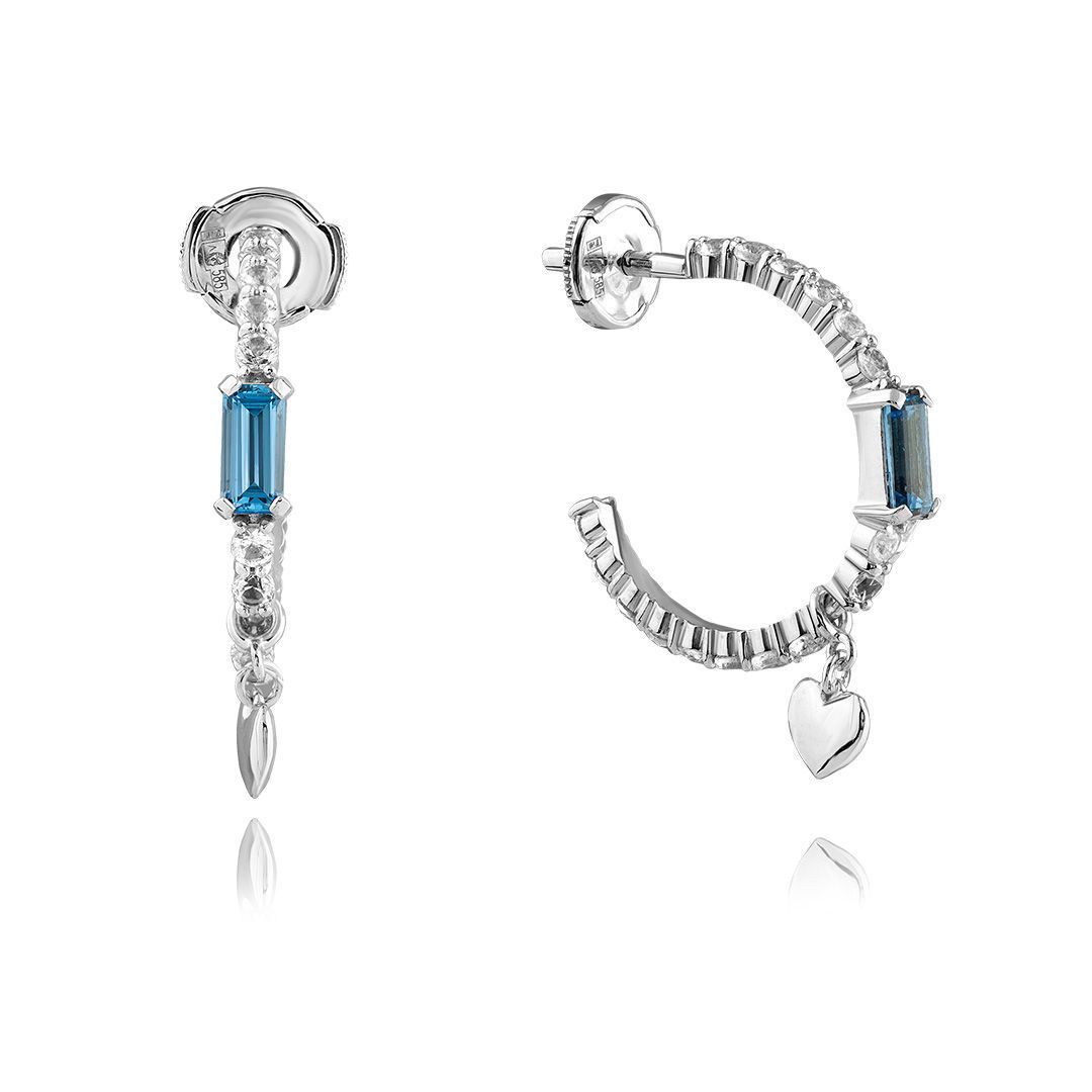 Пусеты из белого золота с сапфирами и шпинелью