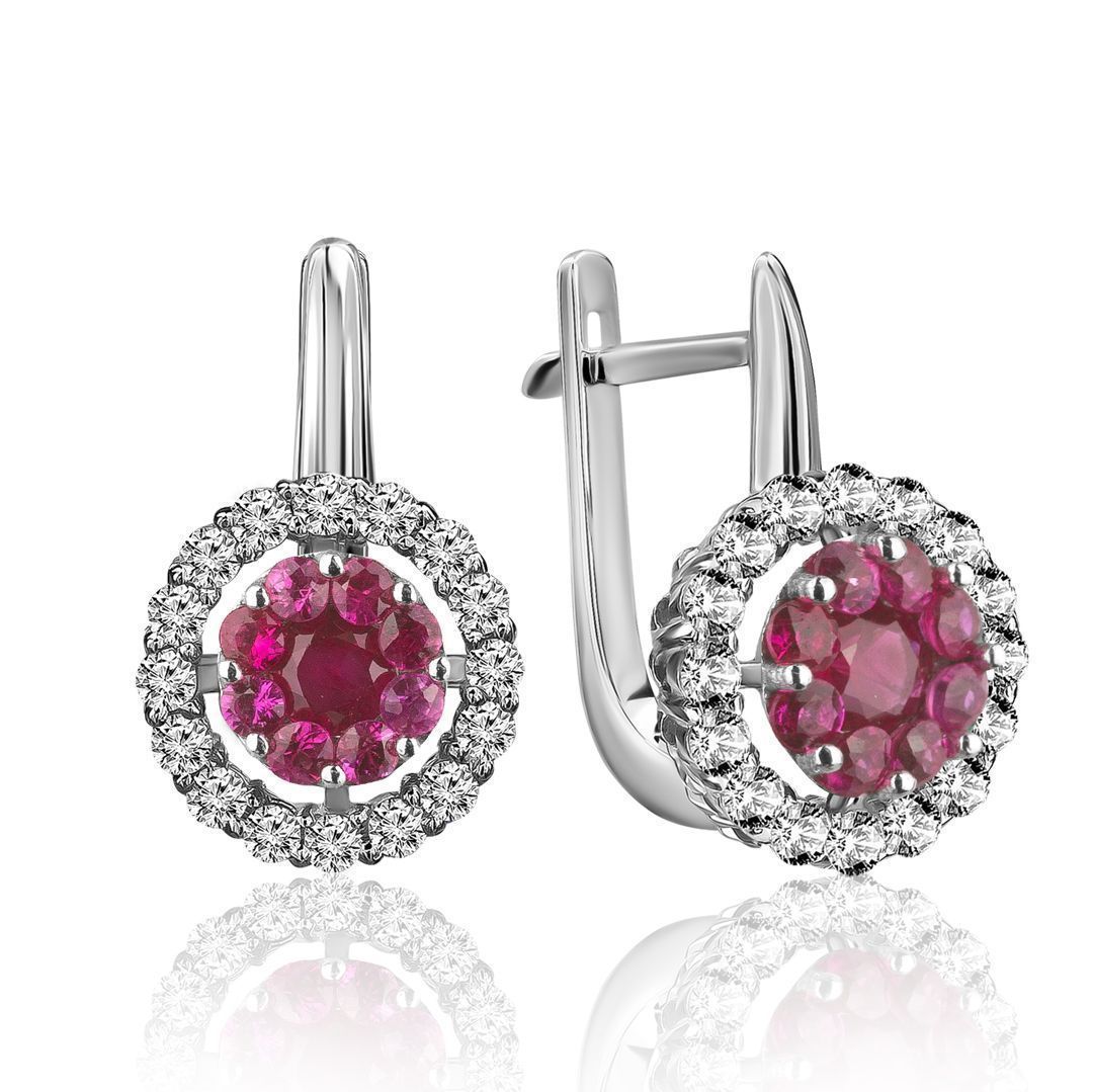 Серьги из белого золота с рубинами и бриллиантами