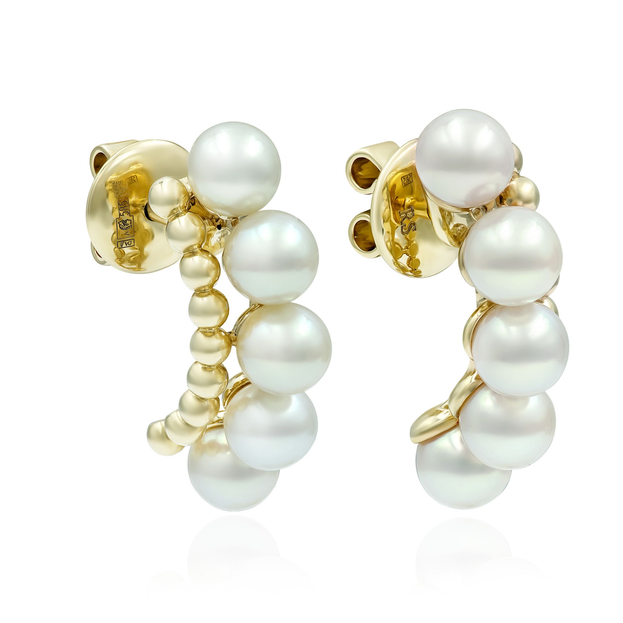 Пусеты из желтого золота с жемчугом