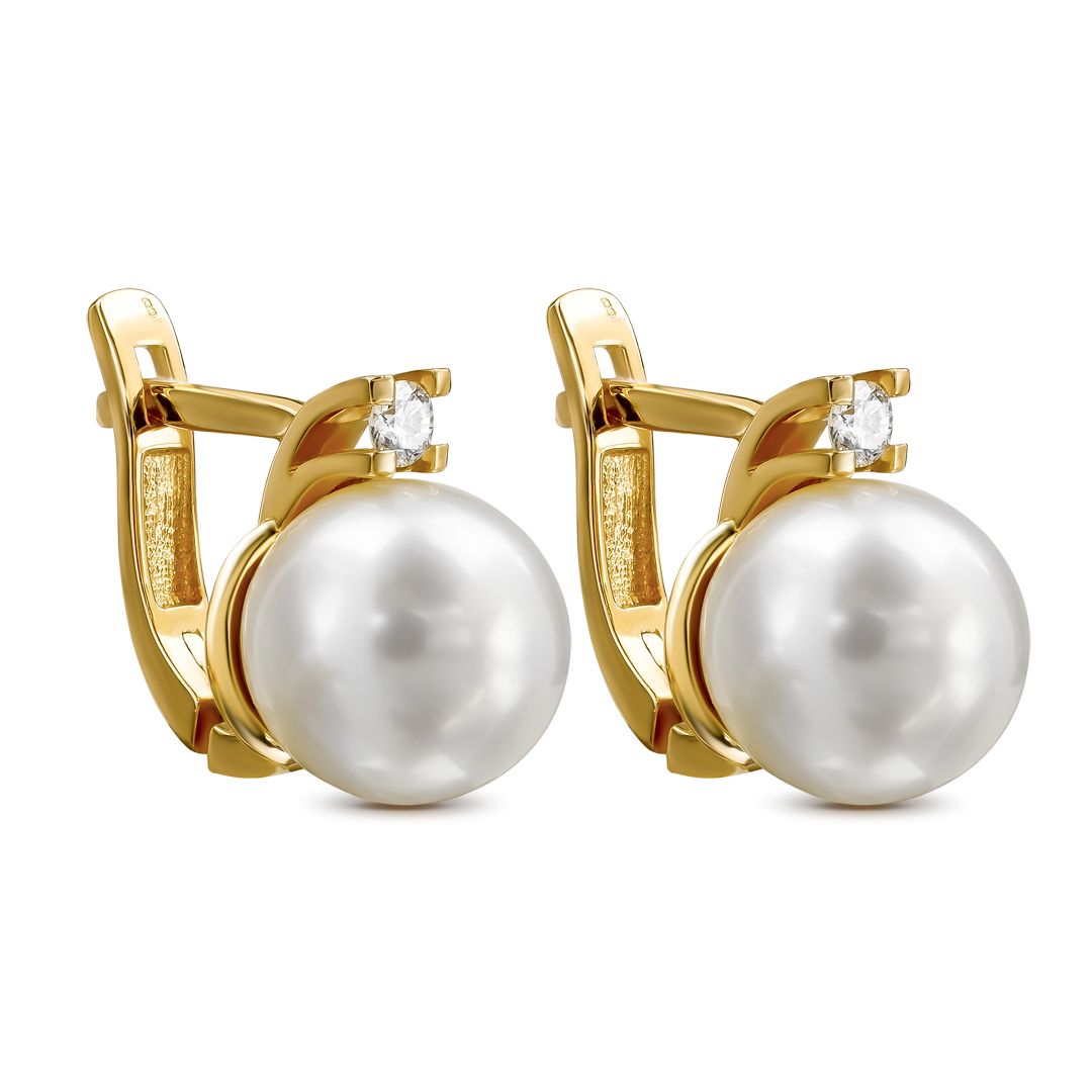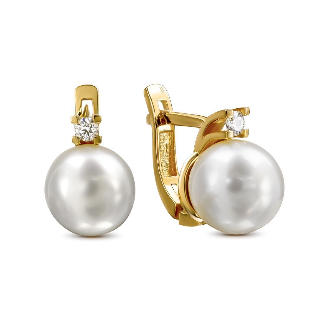 Серьги из красного золота с бриллиантами и жемчугом
